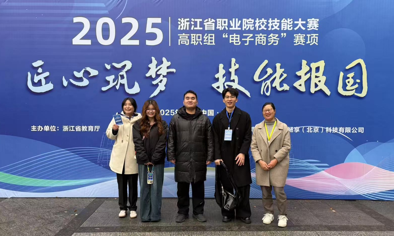 罗桂月、李婕妤、薛慕然、朱煜团队获融媒体内容策划与制作赛项金奖,指导老师杨昕、孙斌;林捷鑫、程凯昕、俞孙洁、王景莹团队获电子商务赛项银奖,指导老师方丽珍、吴有权;林梓祺、朱思烨、裘润哲、周烨团队获互联网+国际经济与贸易赛项银奖,指导老师姜雯、王成伟;潘鑫涛、应俞杰、李洁、曾晨团队获商务数据分析赛项铜奖,指导老师杨昕、石纳芳;蔡董宇、于梓阳、何继儒、张润盈团队获英语口语赛项铜奖,指导老师胡方梅、陈洁;周华、余霖烨、徐馨、张梓熙团队获市场营销赛项铜奖,指导老师廖金燕、王文青。