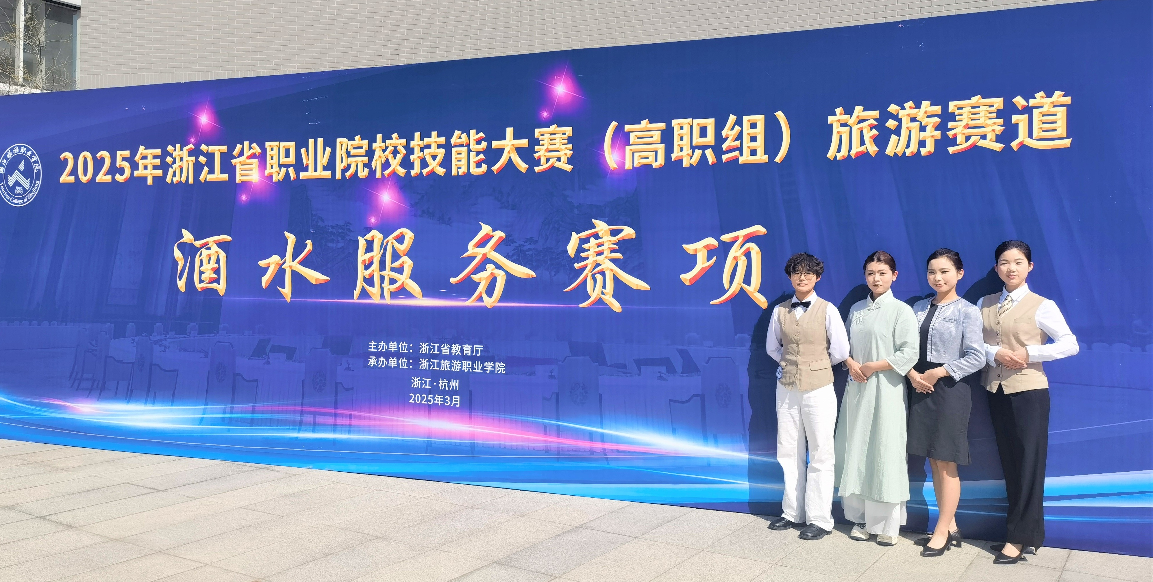 3月24日,酒水服务赛项在杭州举办,来自省内16所高职院校29支队伍同台竞技。智慧旅游学院侯沁含、张思怡、陈奕含、朱晗茜团队的作品《茶酒交响》获铜奖,指导老师沈永青、姜宏刚。3月21日-23日,导游服务组赛项在宁波举办,52支团队206名参赛选手参赛。智慧旅游学院陈雅惠、张诗玥、王莹、谢晨团队的作品《千年进士梦 未来曹村行》获得铜奖,指导老师葛秀华、占胜。