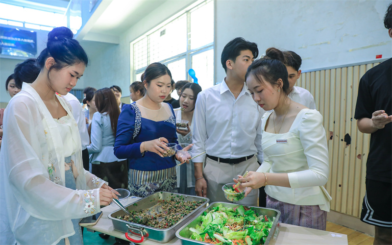 活动现场,老挝留学生们化身“大厨”,精心准备了家乡美食。一道道色香味俱全的菜肴,满足了大家的味蕾,让大家感受了异国风情。