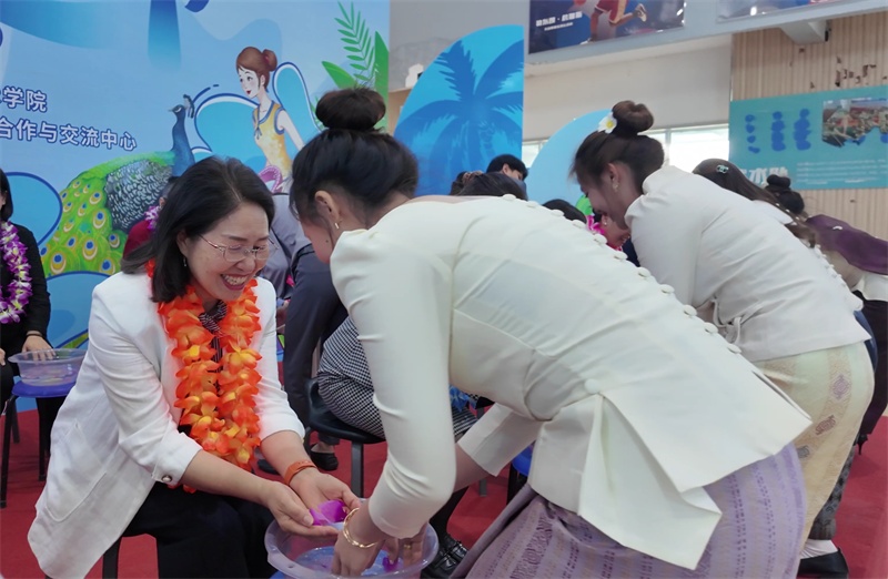 老挝留学生遵循传统习俗,为老师们举行了浴手礼,表达感激之情。他们深情朗诵《中国话》,用坚定的声音传递着学好中国语言、讲好中国故事的决心。