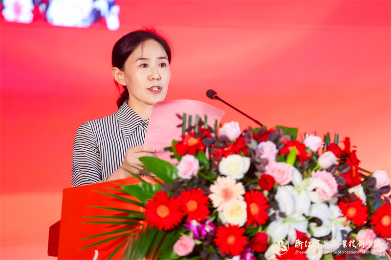数字技术学院22创意班张杨晨昱家长作为毕业生家长代表发言,介绍了张杨晨昱成为中共预备党员,获得中国大学生程序设计大赛总决赛高职组金奖、省政府奖学金、“码蹄杯”全国职业院校程序设计大赛金奖、睿抗机器人大赛金奖等荣誉、专升本拟录取宁波工程学院等成长历程,对学校的精心栽培表示感谢,并为全体毕业生送上祝福。