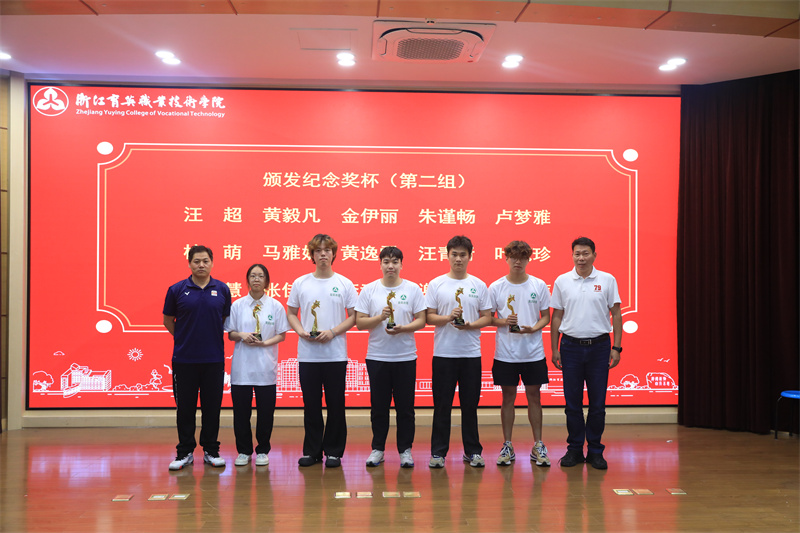 退役仪式环节,退役运动员依次登台,从校领导和教练手中接过纪念奖杯。每一位运动员背后都是一段热血青春的故事,他们在赛场上带伤坚持、默契协作,有胜利的欢呼,也有失利的泪水,他们的拼搏精神激励着每一位育英人。
