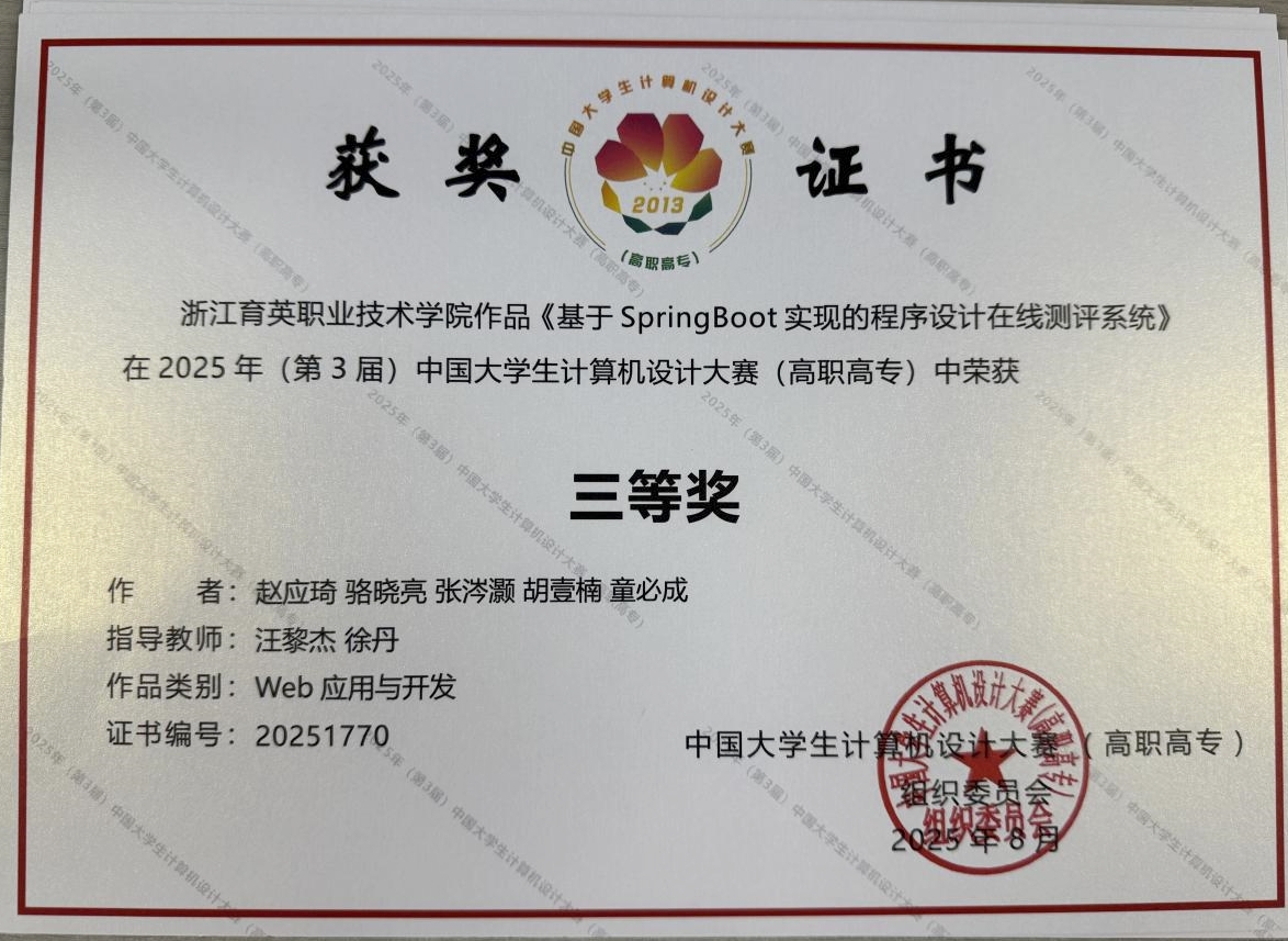 数字技术学院院长李向东表示,此次获奖实现了学校在该项全国高水平赛事中的新突破,也是学校持续推进教学改革、强化学生创新与实践能力培养的又一成果,表明学生已具备将专业知识转化为实际项目的能力,充分展现了敢于挑战、勇于创新、顽强拼搏的精神风貌。数字技术学院将继续鼓励和支持学生参加各类高水平学科竞赛,坚持以赛促学、以赛促教,不断提升人才培养质量。
