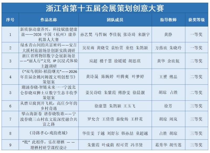 在院级比赛中,共有6件作品源自课程实践,8件作品依托校企合作项目,吸引了来自会展、酒店、旅游管理等专业的90余名学生踊跃参与。