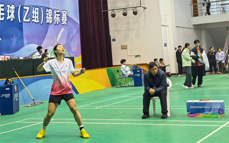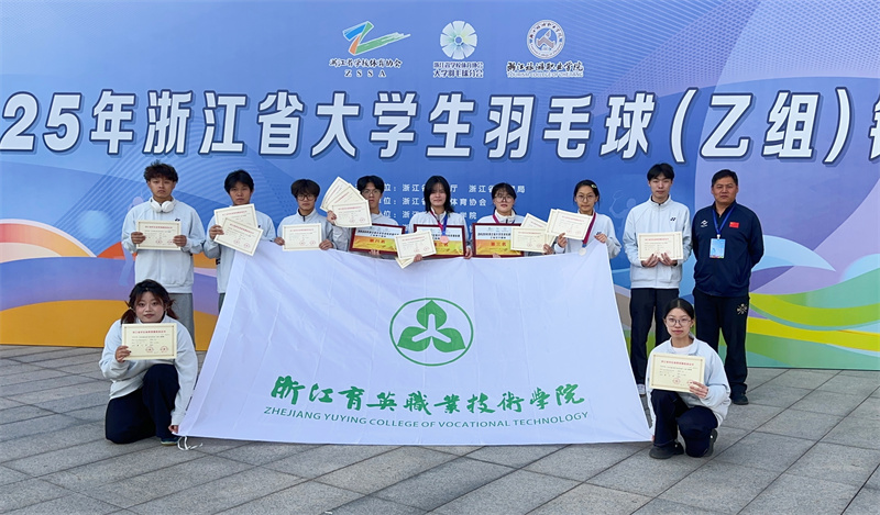 11月25日—28日,2025年浙江省大学生羽毛球锦标赛(乙组)在浙江旅游职业学院落幕。我校羽毛球队11名运动员在领队谢剑峰、主教练黄中华指导下,在高手云集的赛场中顽强拼搏、奋勇争先、过关斩将,斩获总团第三名、女团第三名、男团第八名。单项赛事中,刘妍希斩获女单亚军;毛佳艺、胡涵辰组合获女双第五名;赵以特、马嘉麒获男双第六名。黄中华获“优秀教练员”称号,马嘉麒、胡涵辰获评“优秀运动员”称号。
