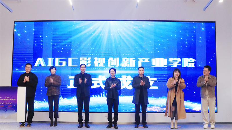 12月18日,浙江育英职业技术学院AIGC影视创新产业学院成立仪式在与光同尘文化科技有限公司杭州总部举行。