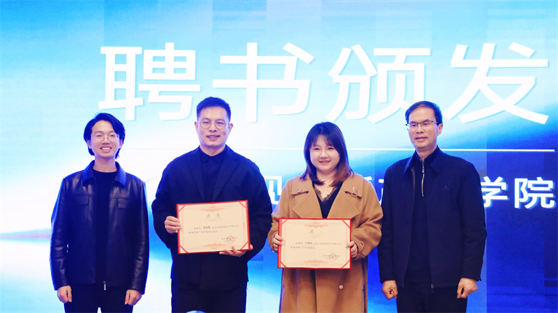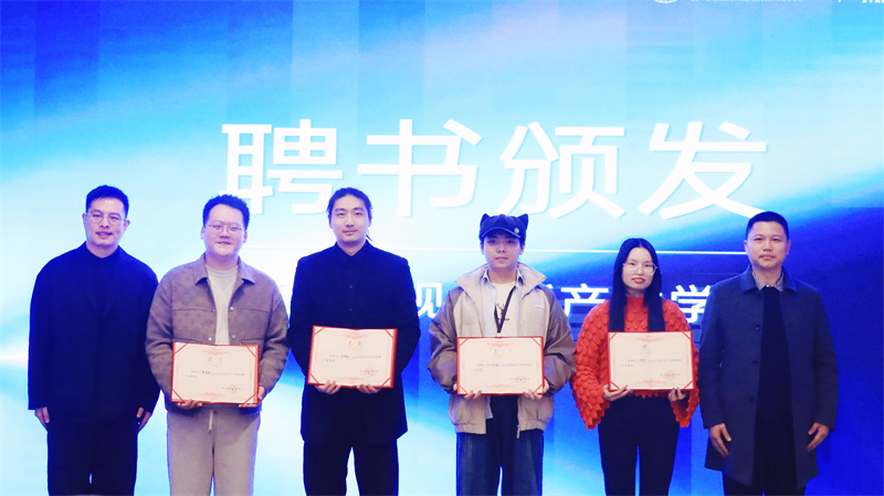 中高企联合签约成立AIGC影视创新产业学院,中高企联合启动AIGC影视创新产业学院,丁金昌与陈发灵共同为卢静佳颁发产业学院院长聘书,为宋连凯颁发产业学院执行院长聘书。宋连凯与施斌共同为与光同尘公司资深设计师颁发“产业教授”聘书,丁金昌与陈发灵共同为“中高职一体化校外实践基地”揭牌。