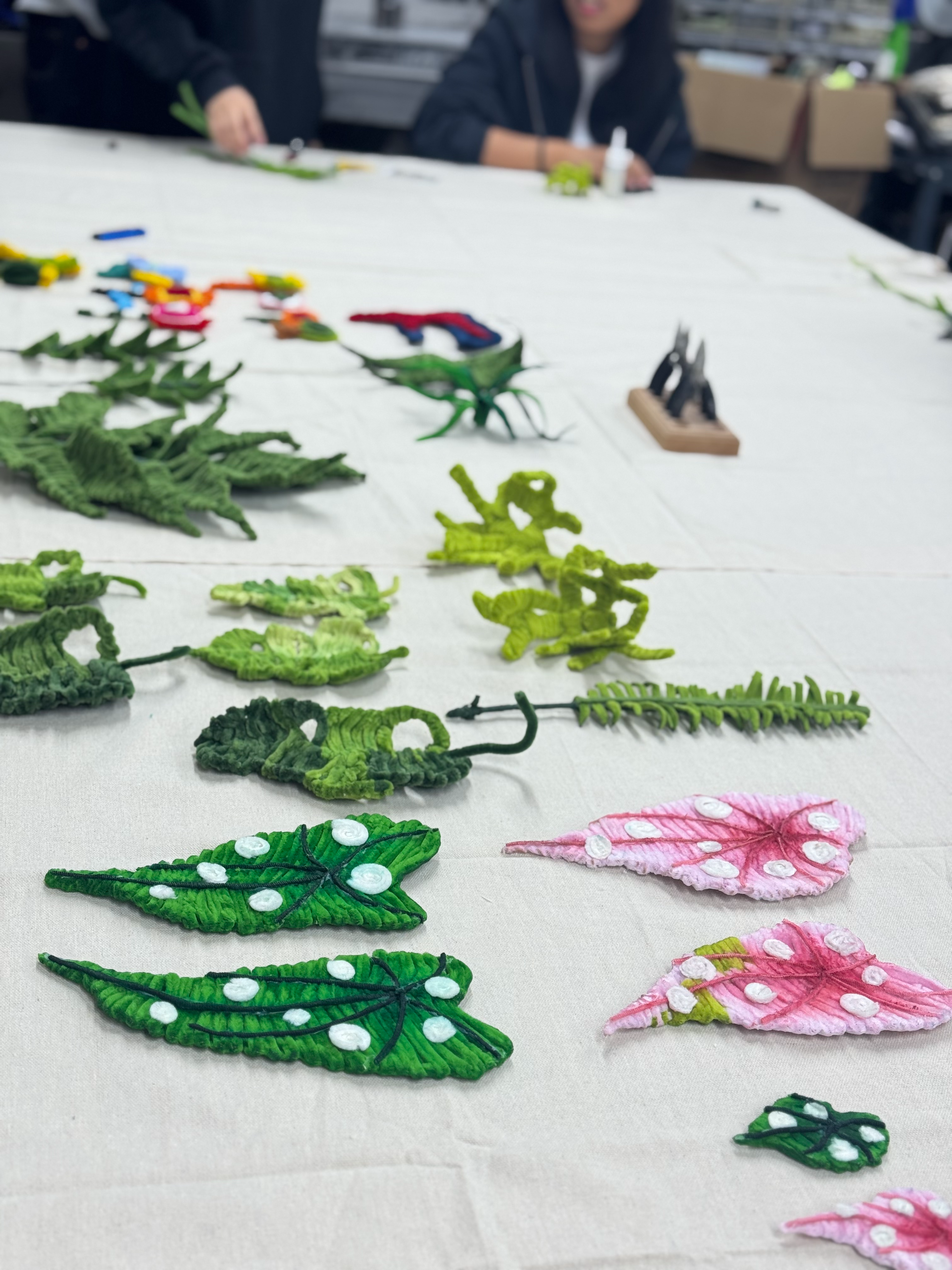 扭扭棒作为兼具趣味性与可塑性的手工材料,近年来在文创领域备受青睐。9月中旬,李晓、范志两位老师结合自身设计实践经验,引入扭扭棒衍生产品开发的真实项目,将课堂教学与市场需求紧密对接。“传统课堂多以虚拟命题为主,学生作品常面临纸上谈兵的困境。”项目负责人李晓老师介绍,此次项目联合本地文创企业,明确要求学生设计兼具艺术性、实用性与性价比的衍生产品,从市场调研到产品落地全程参与。项目启动之初,范志老师带领学生开展了为期两周的市场调研。学生们分组走访文创园区、电商平台及手工市集,梳理出“亲子互动”“桌面装饰”“节日礼品”三大核心需求方向。“我们发现消费者既想要独特的手工质感,又担心传统扭扭棒产品易变形、难保存的问题。”参与调研的学生沈嫣然说,基于这一痛点,团队在老师指导下确定了“加固骨架+防水涂层”的技术方案。