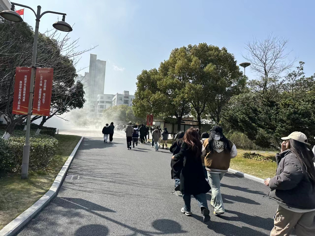 为进一步强化我校师生消防安全意识,提升应对突发火情事件的应急疏散能力,我校于2024年3月19日下午14时在校内举行了春季消防突发事件疏散逃生演练活动,数字商贸学院学工办丁月明主任、辅导员许佳燕、楼芷晗、谷卫英等老师与150余名学生参与本次春季消防突发事件疏散逃生演练活动。