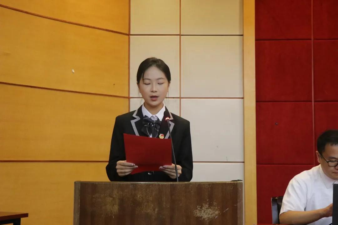 奏唱国歌之后,德育教研室辅导员沈文青老师带领全体师生诵读校训。作为育英学子,我们应该牢记“厚德载物、自强不息”的校训,领悟中华民族传统文化的精神,勤奋努力、开拓进取。