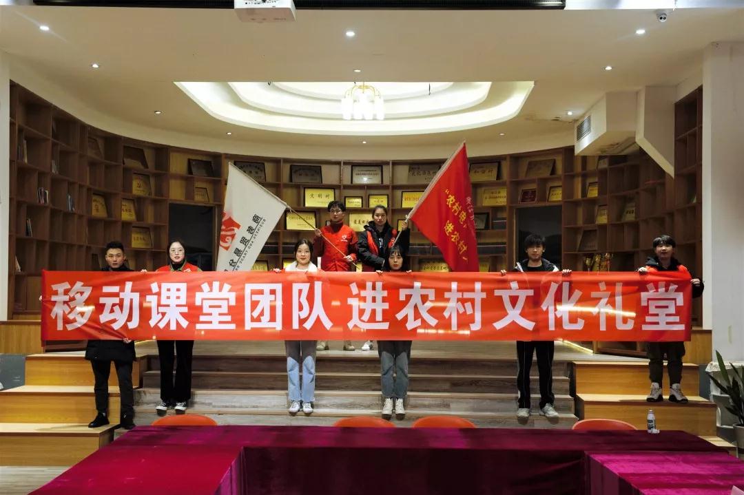 并且在文化礼堂的四周还摆有陈列柜,里面摆放着许多辛福村的特色产品例如手工编织的竹篮等等。随后跟随着周老师我们来到辛福村的图书馆。精美的装修、满创意的设计、丰富的藏书无不让人眼前一亮。在图书馆的一角还有一块专门陈列荣誉的区域,见证了辛福村从无到有从零起步到现在的繁荣充实。之后各分院的同学也在此集合,由石宇钦老师再次为同学们传达本次活动“礼堂变课堂、技能送下乡”的主旨,并且为各小队分配了任务。