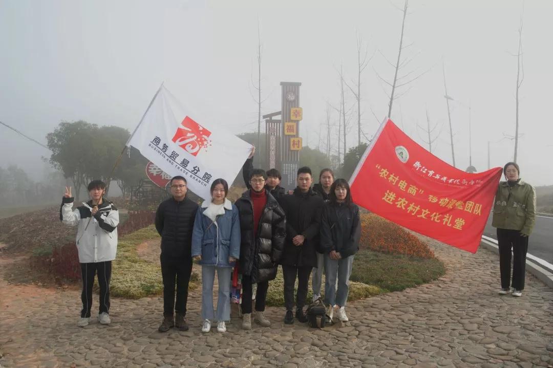 为进一步推进“学校进农村文化礼堂”工作和“农村电商齐发展、商贸移动进课堂”活动,12月6日至7日学院组织各分院小队奔赴建德乾潭镇幸福村开展了为期两天的社会实践活动。