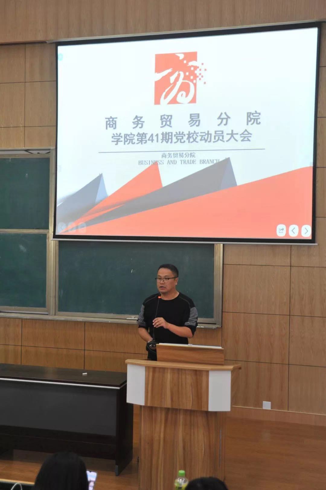 商贸分院于2019年10月17日中午12点半在3202教室召开学院第四十一期党校动员大会,此次动员大会由丁月明老师主讲。