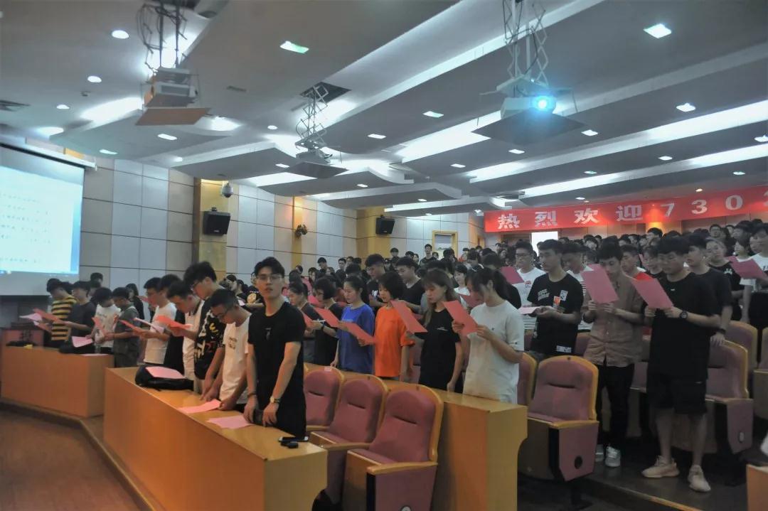 丁老师首先介绍了分院领导及各教研室主任。接着,在周莉莎老师的带领下,全体2019级新生齐声诵读校训,感受大学第一课。