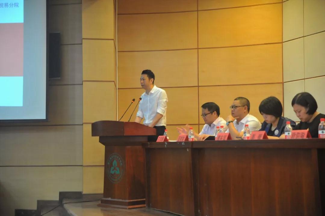 2019年9月15日上午,商务贸易分院在综合楼三楼学术报告厅举行了2019级新生见面会。出席本次会议的有商务贸易分院院长欧阳驹老师,党总支书记、副院长姜蕾老师,副院长陈贤平老师,副院长王慧老师,各教研室主任,各新生班班主任以及2019级全体新生。会议由德育教研室主任丁月明老师主持。