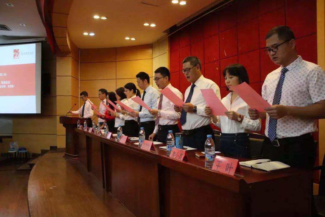 新生见面会在庄严的国歌声中拉开序幕。丁老师首先介绍了到场参加会议的分院领导以及各位老师。接着,在朱凯凯老师的带领下,全体18级新生齐声朗读校训,感受学院精神。