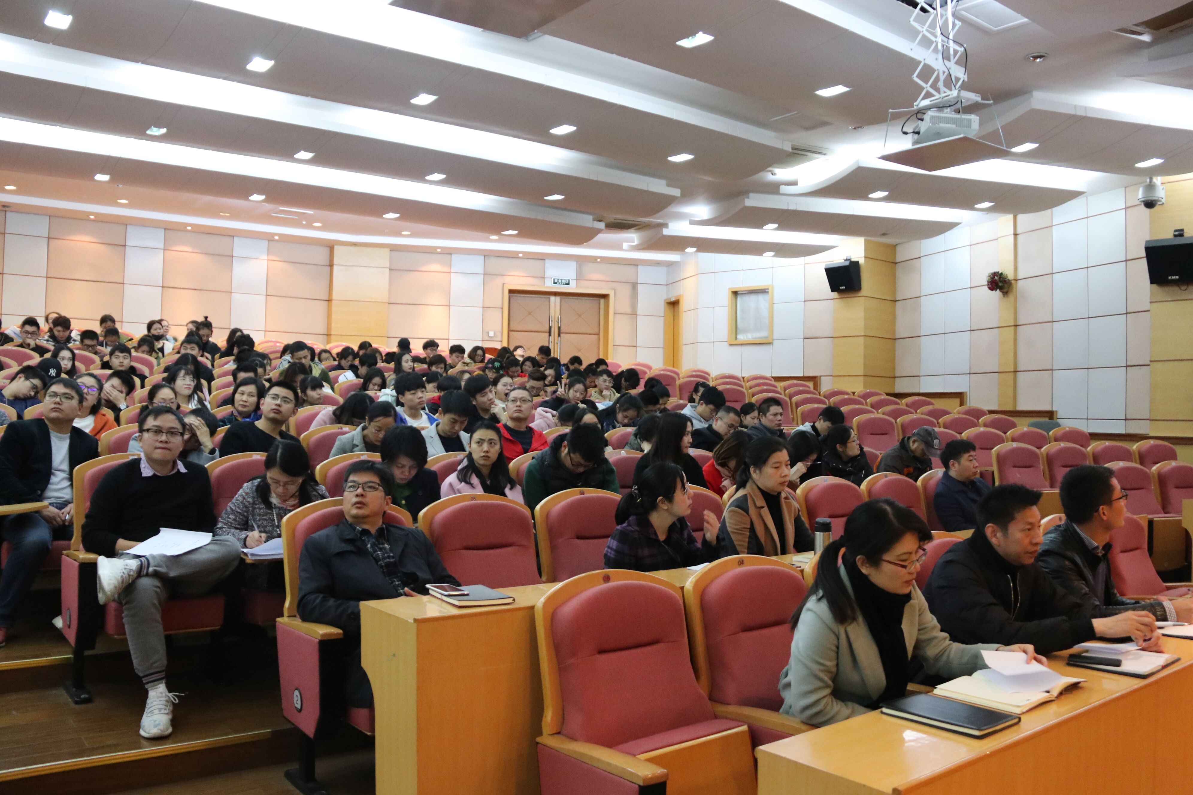 接着,王锡耀书记从新成就、新时代、新使命、新思想、新方略、新征程、新目标和新要求8个方面全面深入的给大家解读了十九大报告。在讲到大会主题时,他带领大家进一步明确了中国共产党人的初心和使命,是为中国人民谋幸福,为中华民族谋复兴。带领大家重温了中共一大召开的历史,要我们牢记历史使命。王书记谈到十八大以来的五年是党和国家发展进程中极不平凡的五年,迎难而上,开拓进取,取得了历史性成就。中国特色社会主义进入了新时代,中华民族迎来了从站起来、富起来到强起来的伟大飞跃。我国日益走近世界舞台中央、不断为人类作出更大贡献的时代。我国社会主要矛盾变化,由人民日益增长的物质文化需求同落后的社会生产之间的矛盾,变成人民日益增长的美好生活需要和不平衡不充分的发展之间的矛盾。提到了四个自信:道路自信、理论自信、制度自信、文化自信。四个伟大;伟大斗争,伟大工程,伟大事业,伟大梦想。提到习近平新时代中国特色社会主义思想,是马克思主义中国化最新成果,是党和人民实践经验和集体智慧的结晶。王书记还从坚定文化自信,推动社会主义文化繁荣兴盛;提高保障和改善民生水平,加强和创新社会治理;加快生态文明体制改革,建设美丽中国;坚持走中国特色强军之路,全面推进国防和军队现代化;坚持“一国两制”,推进祖国统一;坚持和平发展道路,推动构建人类命运共同体;坚定不移全面从严治党,不断提高党的执政能力和领导水平等方面进行分析和解读,使在场的每一位师生受益匪浅。