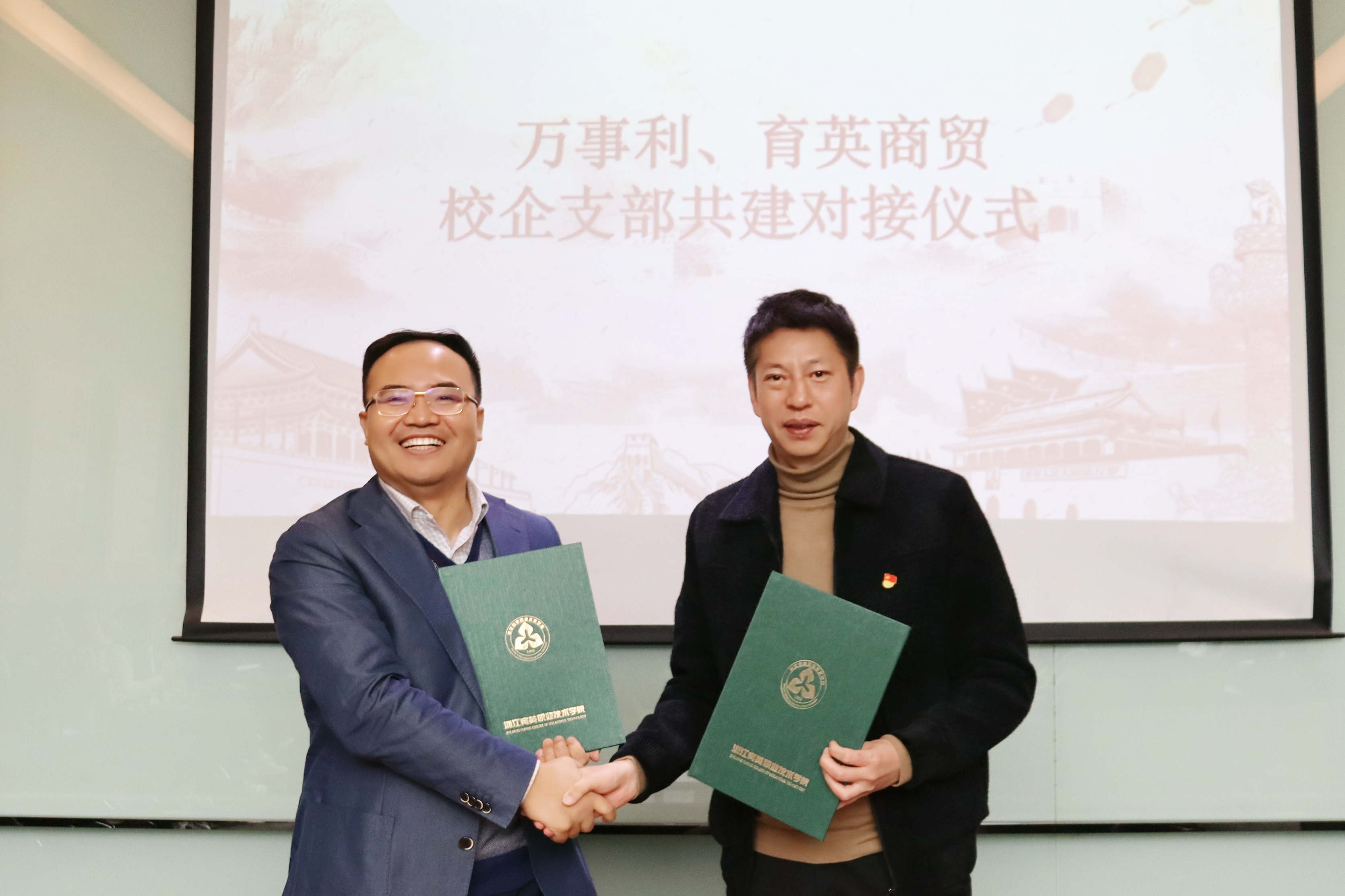商贸分院院长欧阳驹与万事利丝绸文化公司副总经理滕俊楷共同签署了校企合作协议书,为进一步深化校企合作打下坚实的基础。