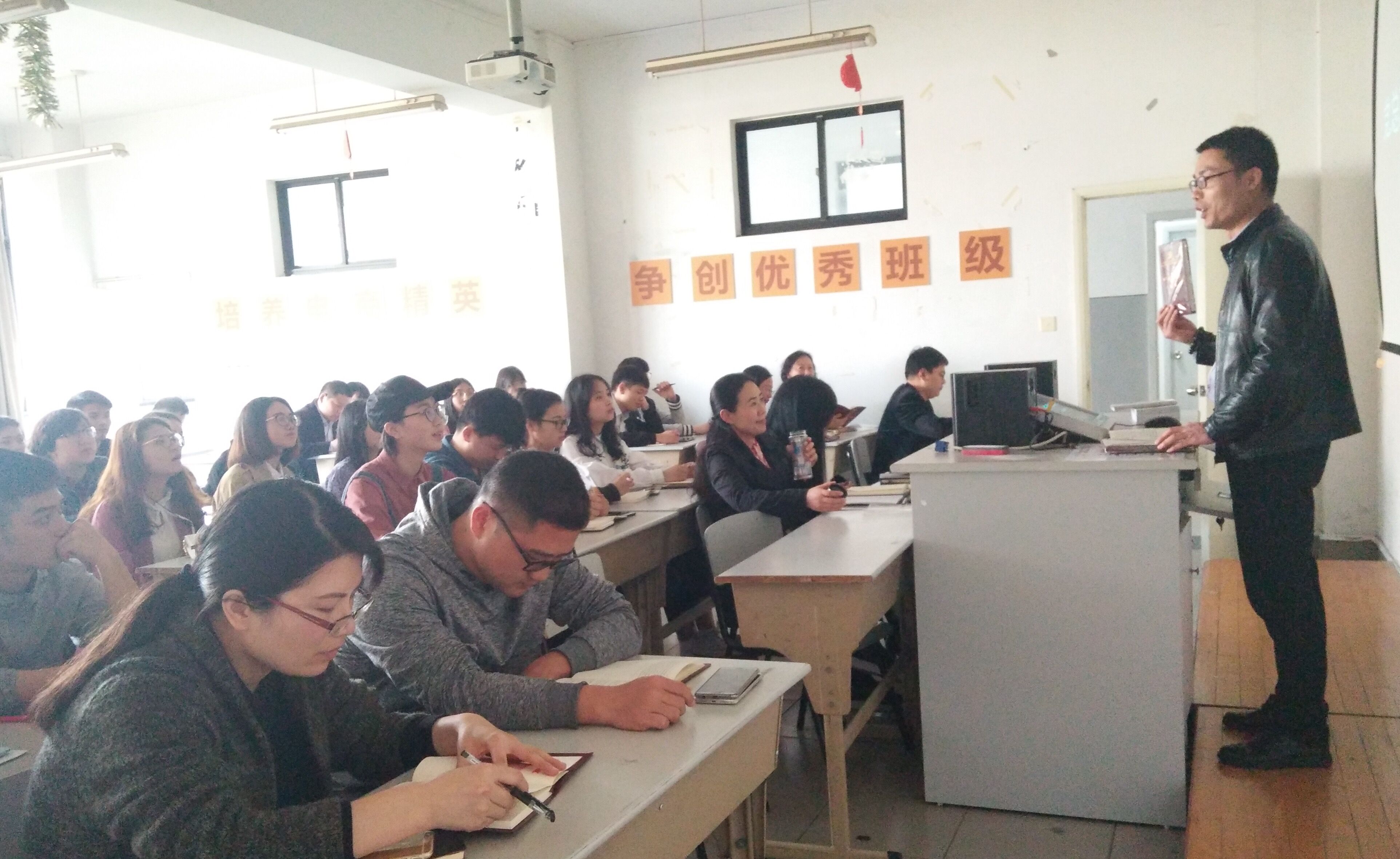 接着,王书记对本学期的党建工作做了详细的布置:一是要继续学习、宣传、贯彻落实党的十九大会议精神,要积极开展“不忘初心,牢记使命”的主题教育活动;二是要贯彻落实全国和省市高校思想政治工作会议精神,教师党员要树立“大思政”的观念,实现“思政课程”向“课程思政”的转变,加强师德师风建设。要以社会实践基地和寝室文明建设为载体,加强对学生的思想政治教育;三是推进“两学一做”常态化、制度化,深化党员固定活动日的内涵,师生党员说“微党课”;四是深化党建品牌建设,构建党建新载体,做实指尖上的微党建,落实党员“三联系”工作;五是深化落实教师党员“六个走在前”,学生党员“五个走在前”;六是做好党员发展和教育管理工作;七是深化群团组织建设;八是加强党校和党章学习小组织的管理工作;九是加强党建与思政课题的研究;十是注重安全稳定工作,包含意识形态领域、教育教学各个环节的安全工作,加强重点部位的安全管理。