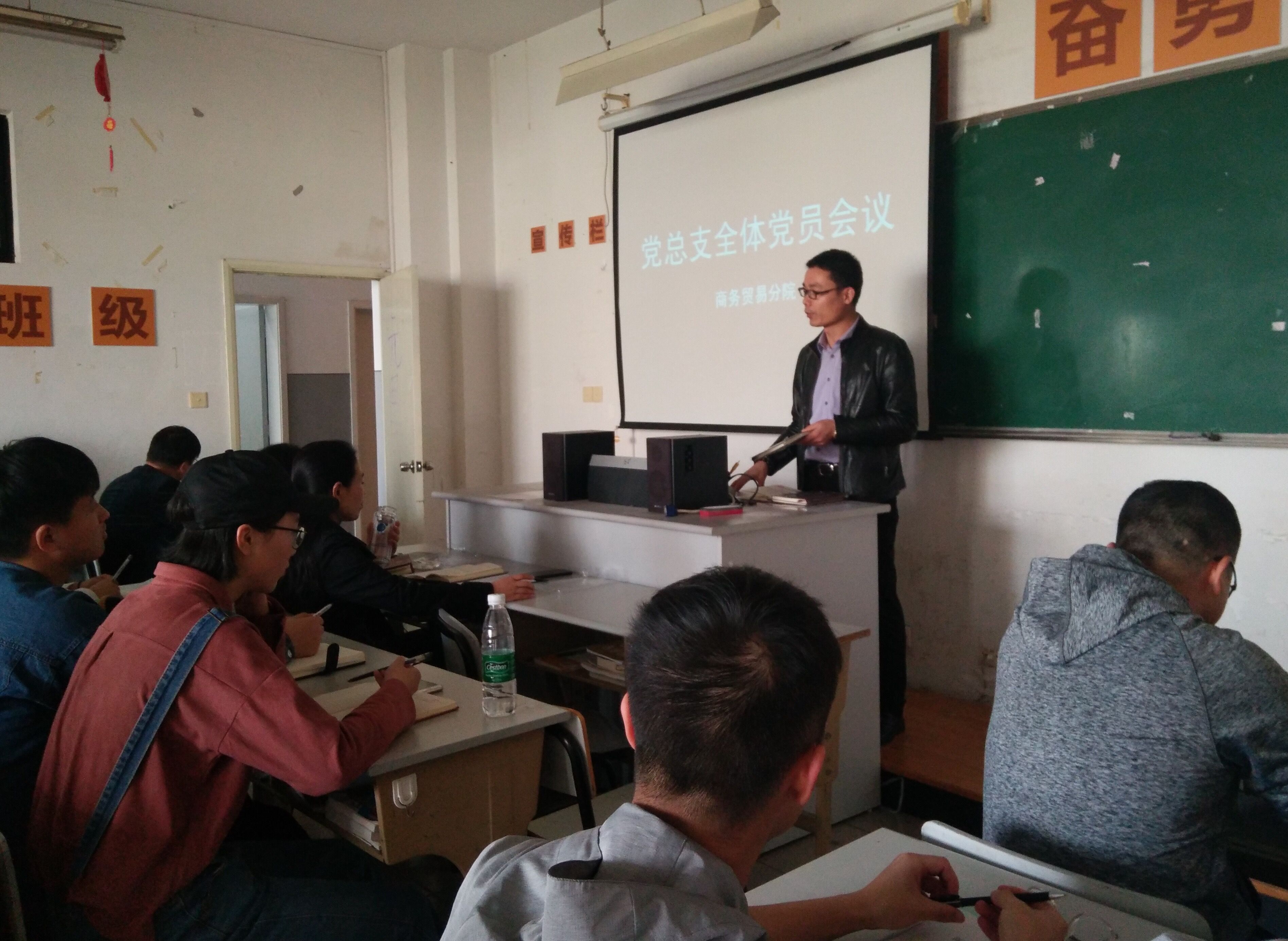 2018年3月27日中午,商务贸易分院党总支在3309教室召开了全体党员会议,会议由分院党总支王贤军书记主持,分院全体教师党员、学生党员参加了本次会议。