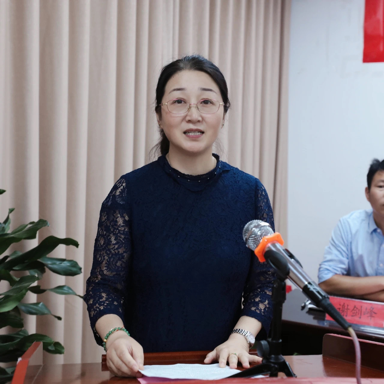 谢鑫发表讲话,她代表全体育英老师祝老挝留学生毕业快乐。她说:“时间过得真快,2018年,你们入校时的情景还历历在目,转眼你们就毕业了。由于疫情的原因,你们在中国的时间全部加起来还不到一年半,从汉语零基础到毕业典礼上能用流利的汉语发言,我很惊喜很感动。你们求学的历程,不容易,教你们汉语知识的老师们不容易。这一年中,我从你们和老师们身上读懂坚持,你们坚持克服困难、在网上上课,坚持完成老师布置的作业,坚持学习汉语,坚持完成学业。这一年中,我从你们身上读懂了感恩。虽然你们在育英求学的日子短暂,但有你们的地方总有惊喜和感动,我们育英的老师和同学们都深深地想念你们。我想告诉你们,你们依然是幸福的,你们有机会能来中国求学,亲眼见证中国的盛世辉煌,亲眼见证充满活力、现代、开放且包容的中国。我想告诉你们,你们依然是幸福的,你们永远是育英的校友,你们曾经并将一直被育英的爱包围。四号大街16号、贤园餐厅、书吧、运动场一定会在你们的梦中出现,那是育英对你们的牵挂。不管你们走多远,你们永远是老师们牵挂的孩子。希望你们毕业后能为老挝的繁荣发展助力,能为中老友谊长青助力。