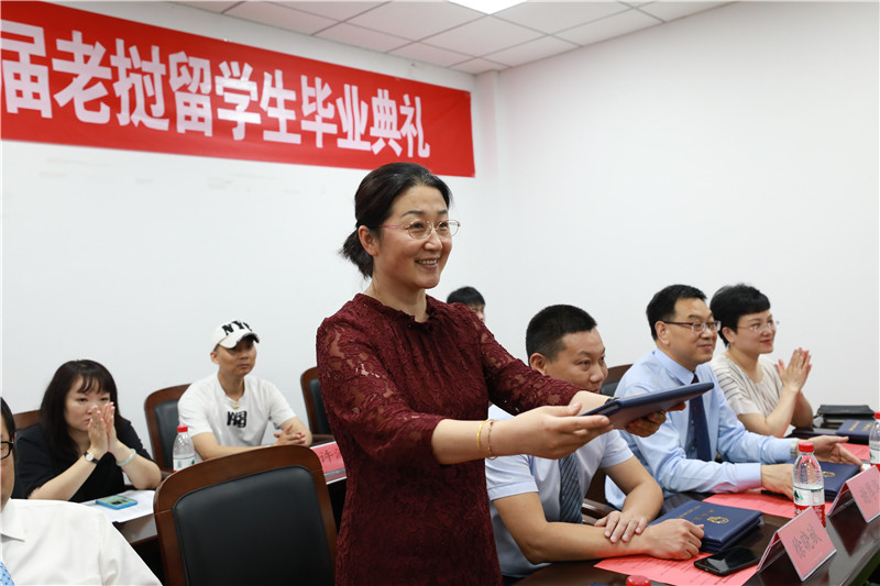 主席台就座领导为毕业生颁发毕业证书。