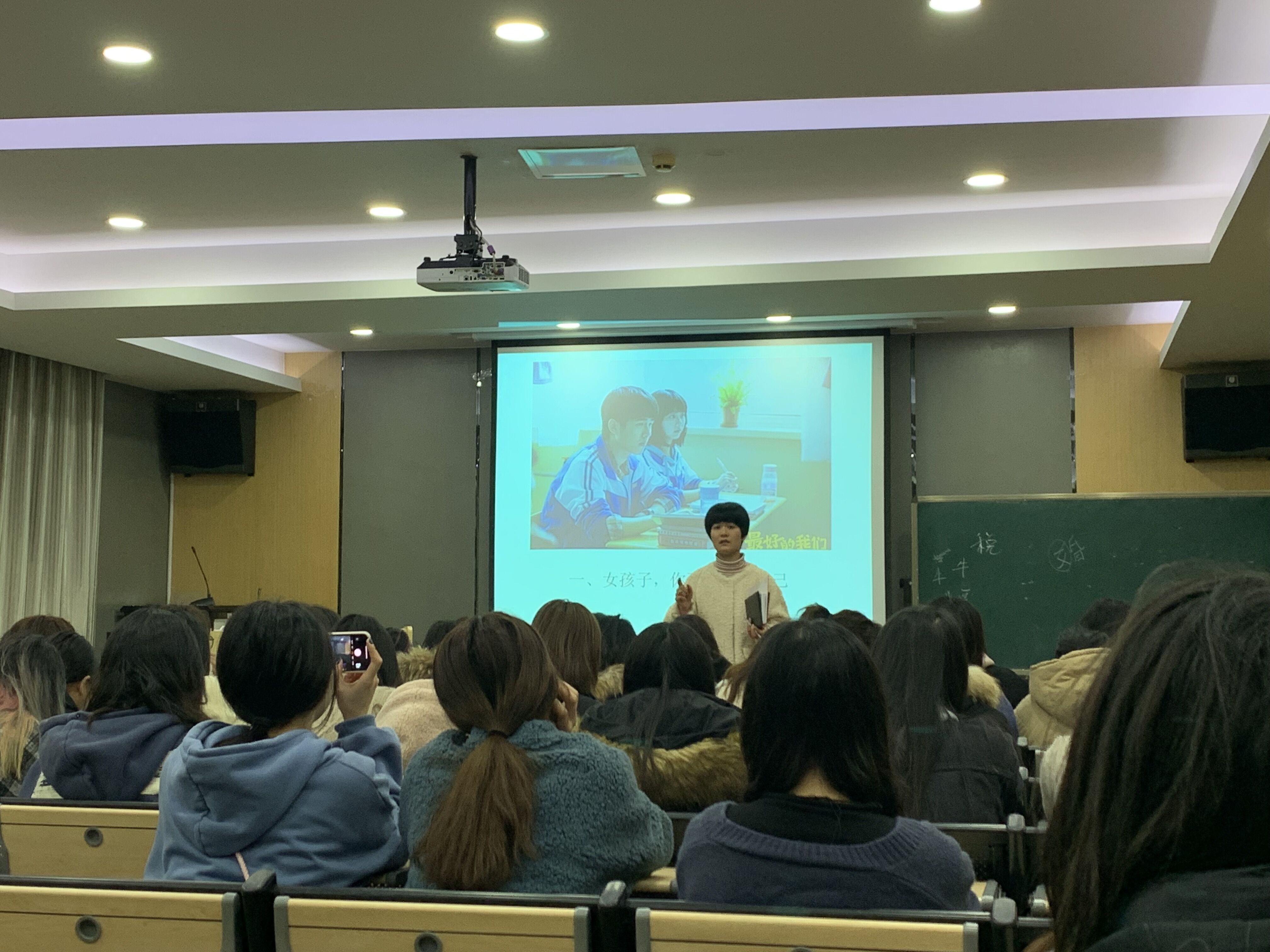 正值女生节来临之际,为贯彻落实学生安全教育工作的指导精神,提高学生自我保护意识,17广告会展专业于3月7日晚6:40在图书馆创意设计中心视听室召开“女大学生,请保护好自己”安全教育主题班会,辅导员陈姚琼老师作为本次班会主讲人。