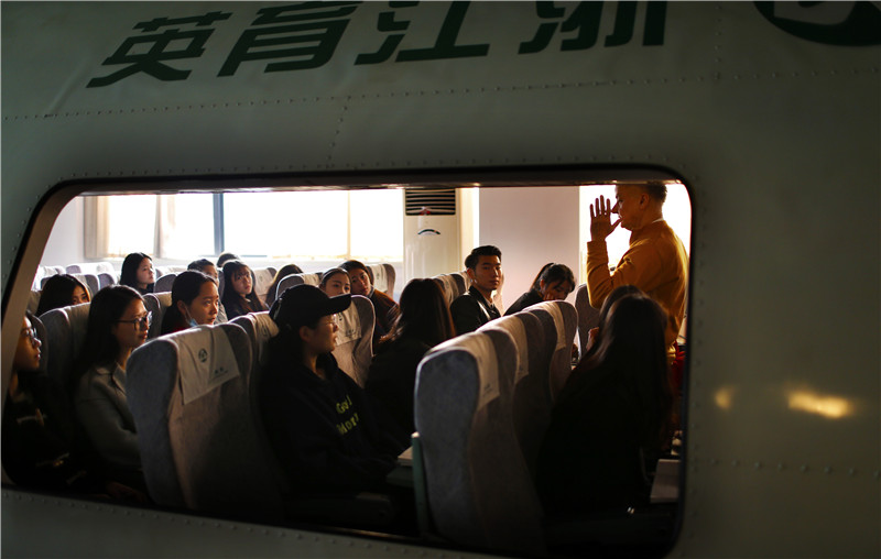 同学们的英语底子都不错,许多人还有从小练习舞蹈的功底。不过,这些仅仅是成为合格空乘的一些基础条件。在飞行之前的漫长职业训练中,还有更多复合型知识需要学习,更多模拟场景需要体验和加以应变。