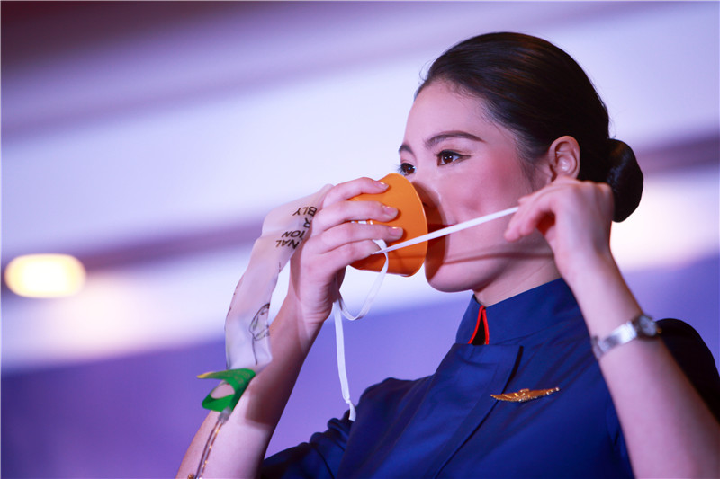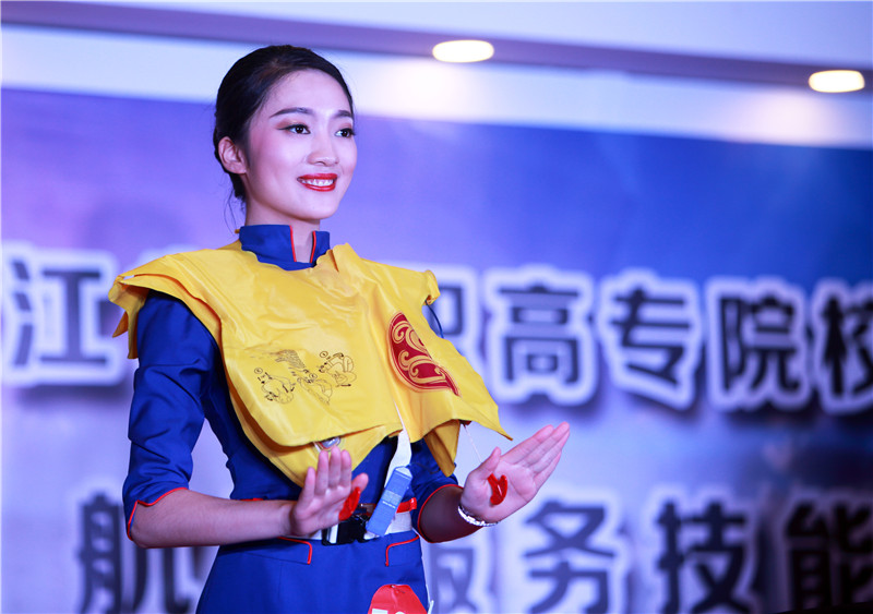 去年,陆至通参加了一次非常专业的航空服务技能大赛,在这场鲜为人知的职业赛事中,作为一名空乘所需的职业风尚、民航知识、机上安全等知识点,都展示得淋漓尽致。而陆至通说:“微笑、专业技能、英语口语和应变能力,每一个细节对空中飞行来说都很重要。”最终,陆至通和学院都获得了很理想的成绩。