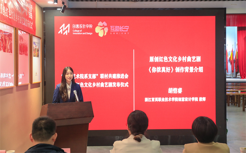 10月31日,浙江育英职业技术学院“百个艺术院系支部联村共建”推进会暨原创红色文化乡村曲艺剧发布仪式在建德市杨村桥镇长宁村文化礼堂举行。