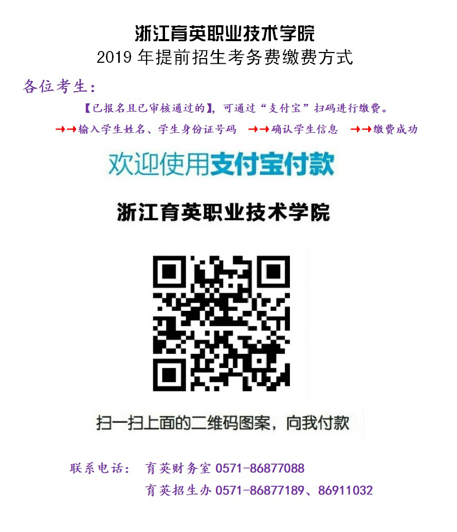 招生咨询 招生公告 报考指南 提前招生 历年分数 2025年招生专栏 录取查询 在线咨询 联系我们 地址:杭州市钱塘区4号大街16号 邮编:310018 电话:0571-86911032、86877189 报考指南 当前位置:首页 >> 招生咨询 >> 报考指南 2019年提前招生考务费缴费方式 时间:2019-02-25