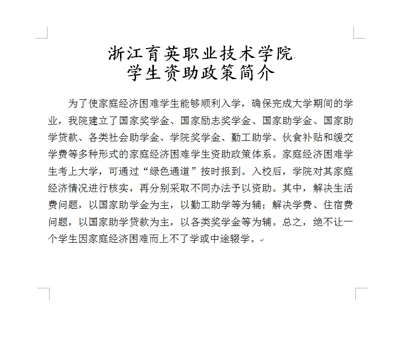 招生咨询 招生公告 报考指南 提前招生 历年分数 2025年招生专栏 录取查询 在线咨询 联系我们 地址:杭州市钱塘区4号大街16号 邮编:310018 电话:0571-86911032、86877189 报考指南 当前位置:首页 >> 招生咨询 >> 报考指南 我院学生资助政策简介 时间:2016-06-08
