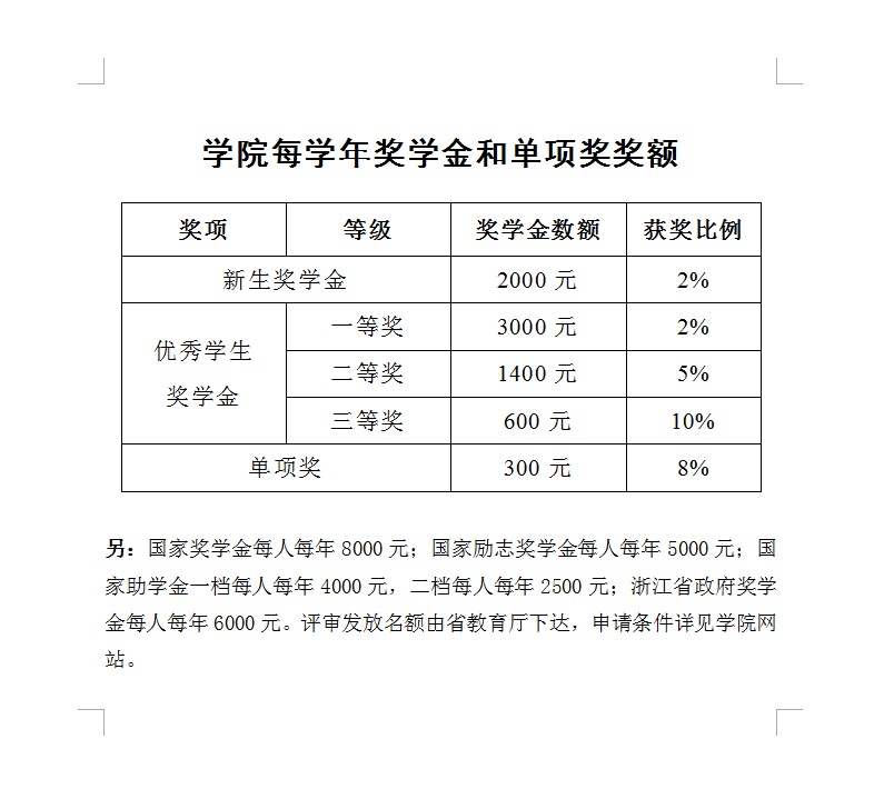 我院2017年奖学金设置