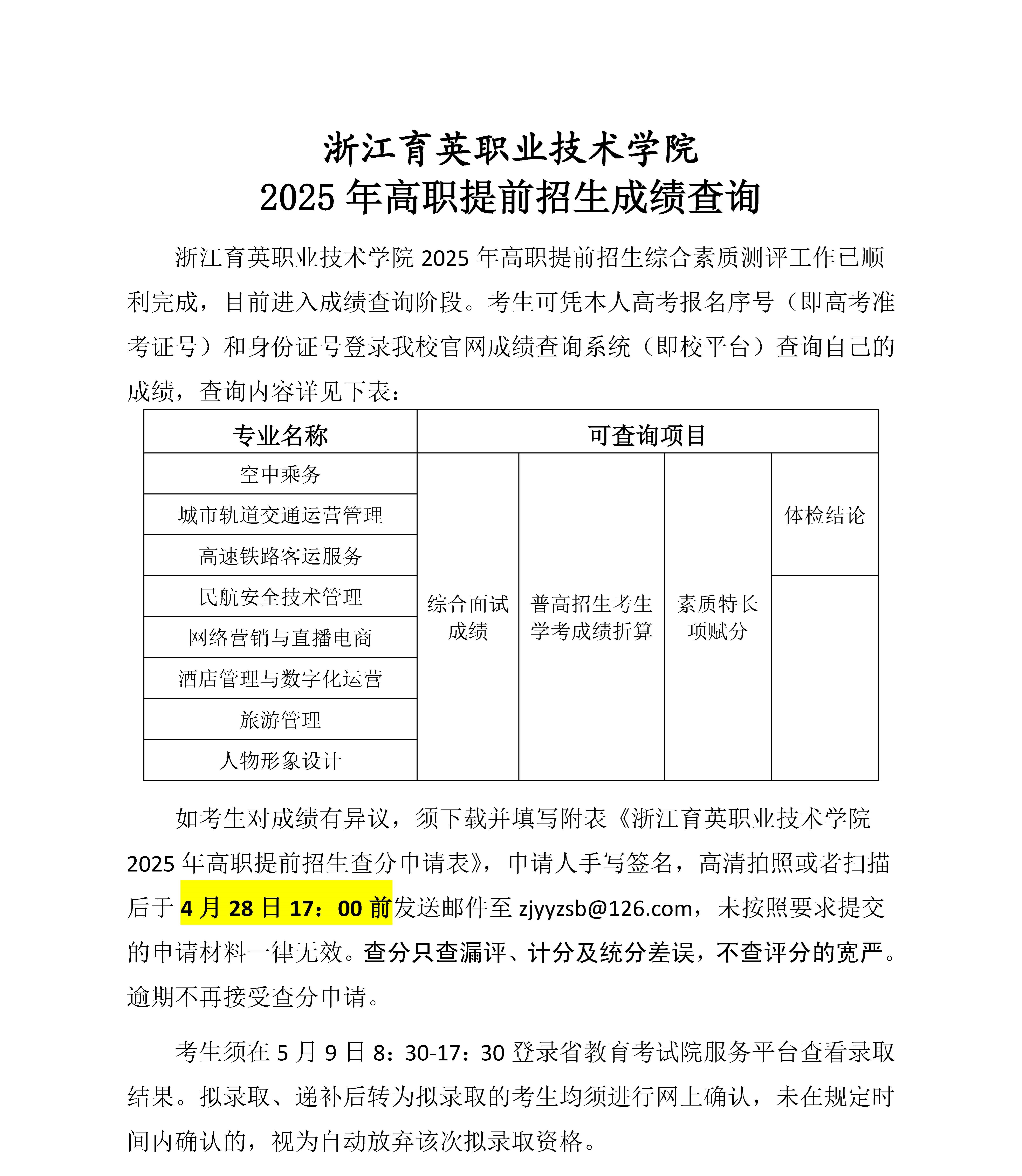 点击下载:浙江育英职业技术学院2025年高职提前招生查分申请表