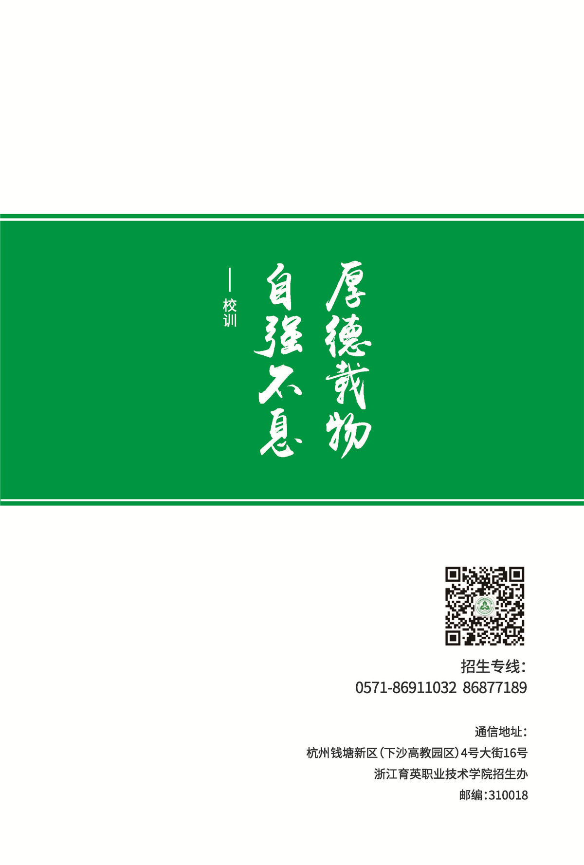 招生咨询 招生公告 报考指南 提前招生 历年分数 2025年招生专栏 录取查询 在线咨询 联系我们 地址:杭州市钱塘区4号大街16号 邮编:310018 电话:0571-86911032、86877189 招生公告 当前位置:首页 >> 招生咨询 >> 招生公告 浙江育英职业技术学院2021年高职提前招生简章(彩页) 时间:2021-03-04