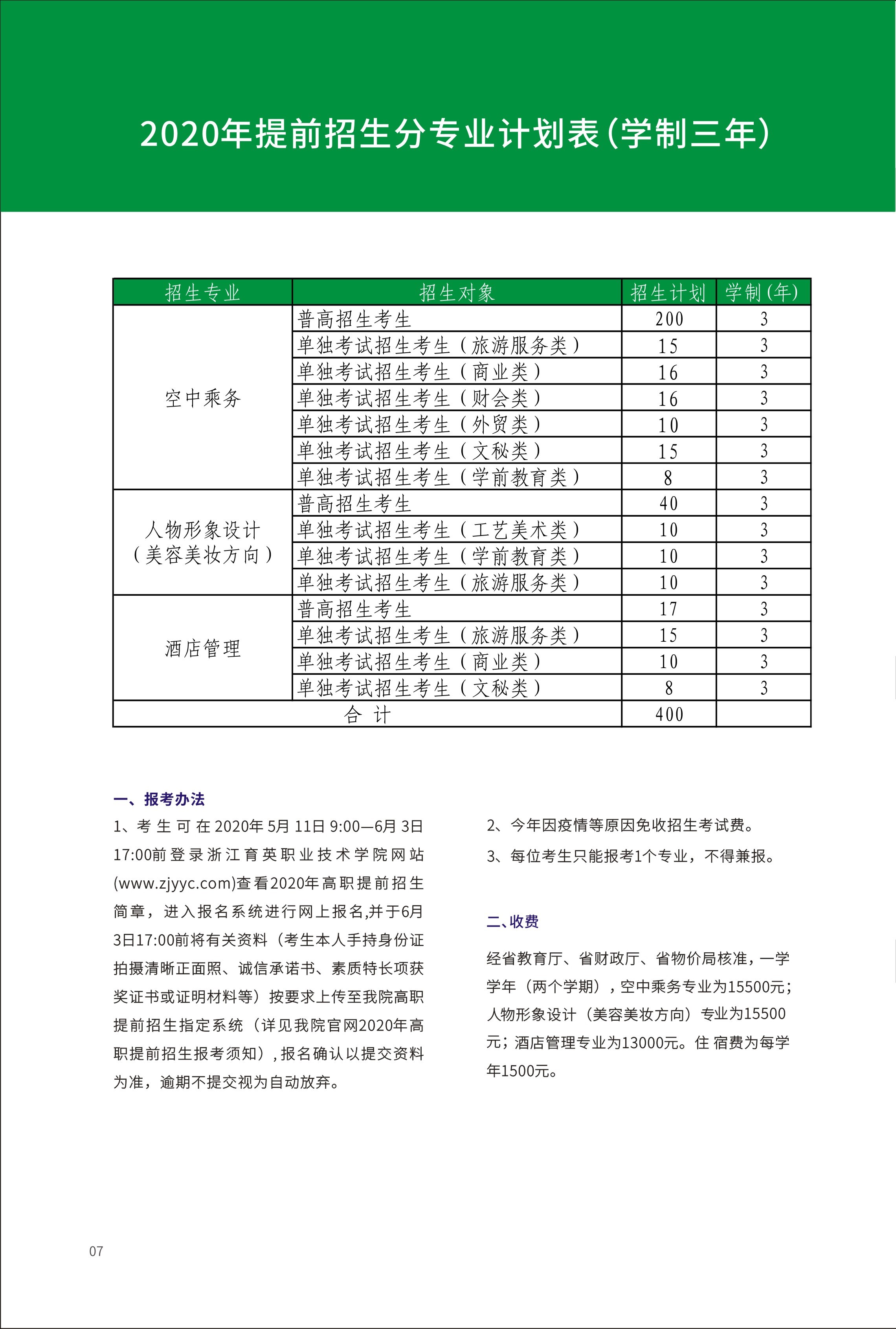 浙江育英职业技术学院2020年高职提前招生简章(彩页)
