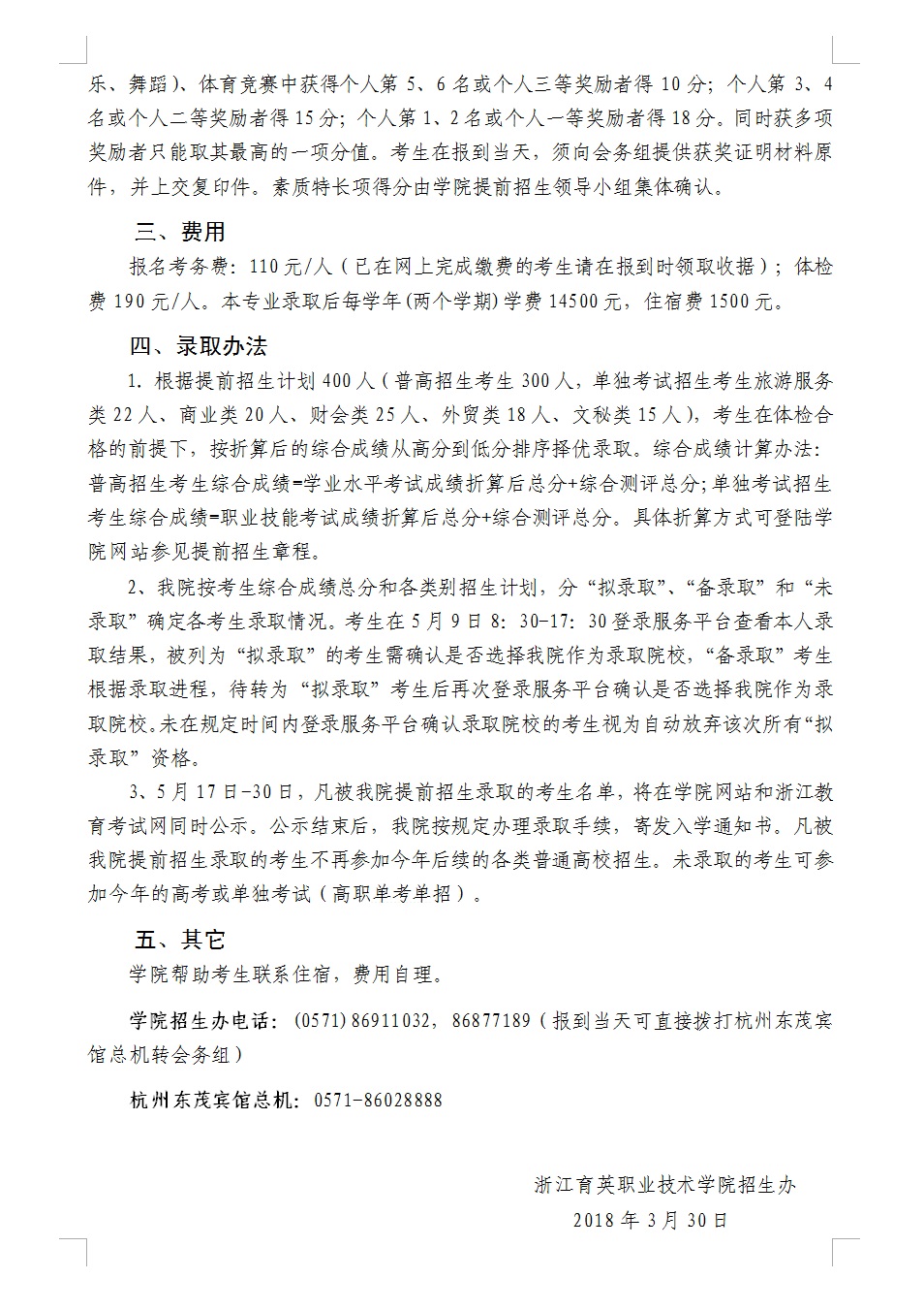 附件:2018年空中乘务专业提前招生综合测评通知