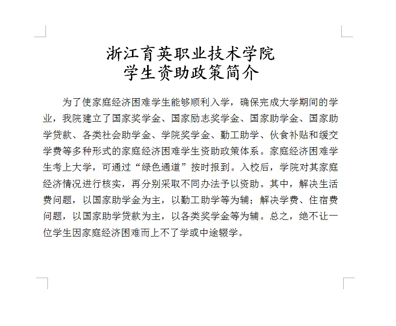 招生咨询 招生公告 报考指南 提前招生 历年分数 2025年招生专栏 录取查询 在线咨询 联系我们 地址:杭州市钱塘区4号大街16号 邮编:310018 电话:0571-86911032、86877189 招生公告 当前位置:首页 >> 招生咨询 >> 招生公告 我院2017年学生资助政策 时间:2017-06-20