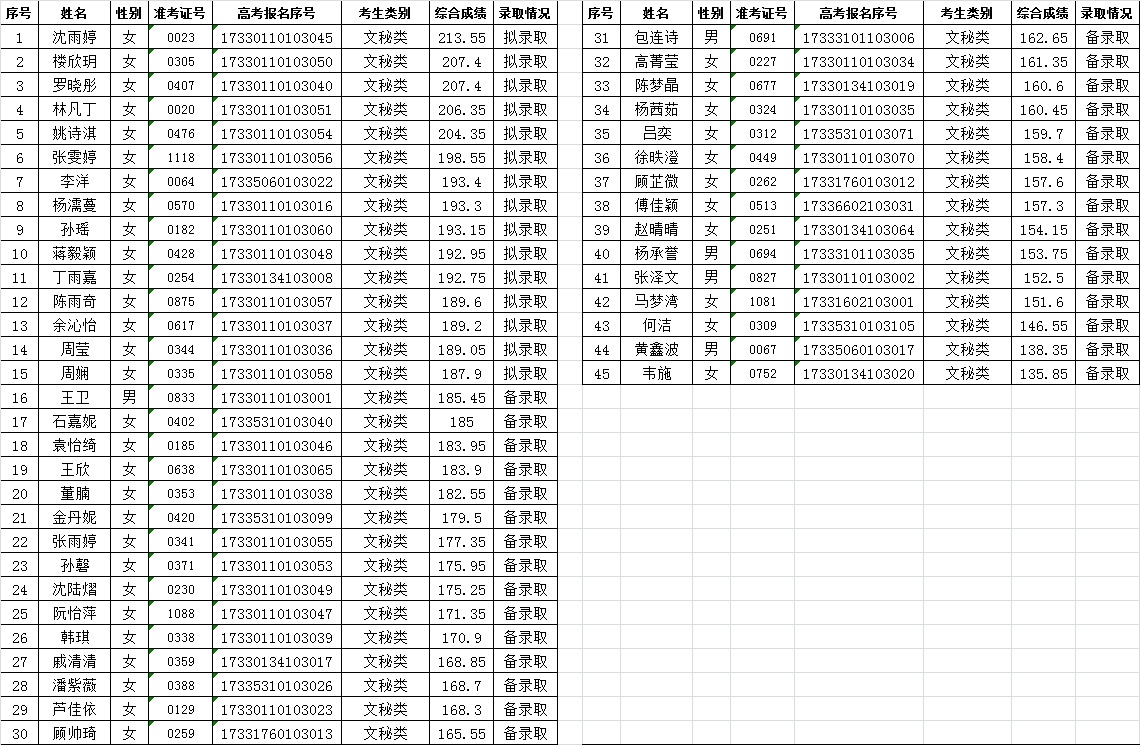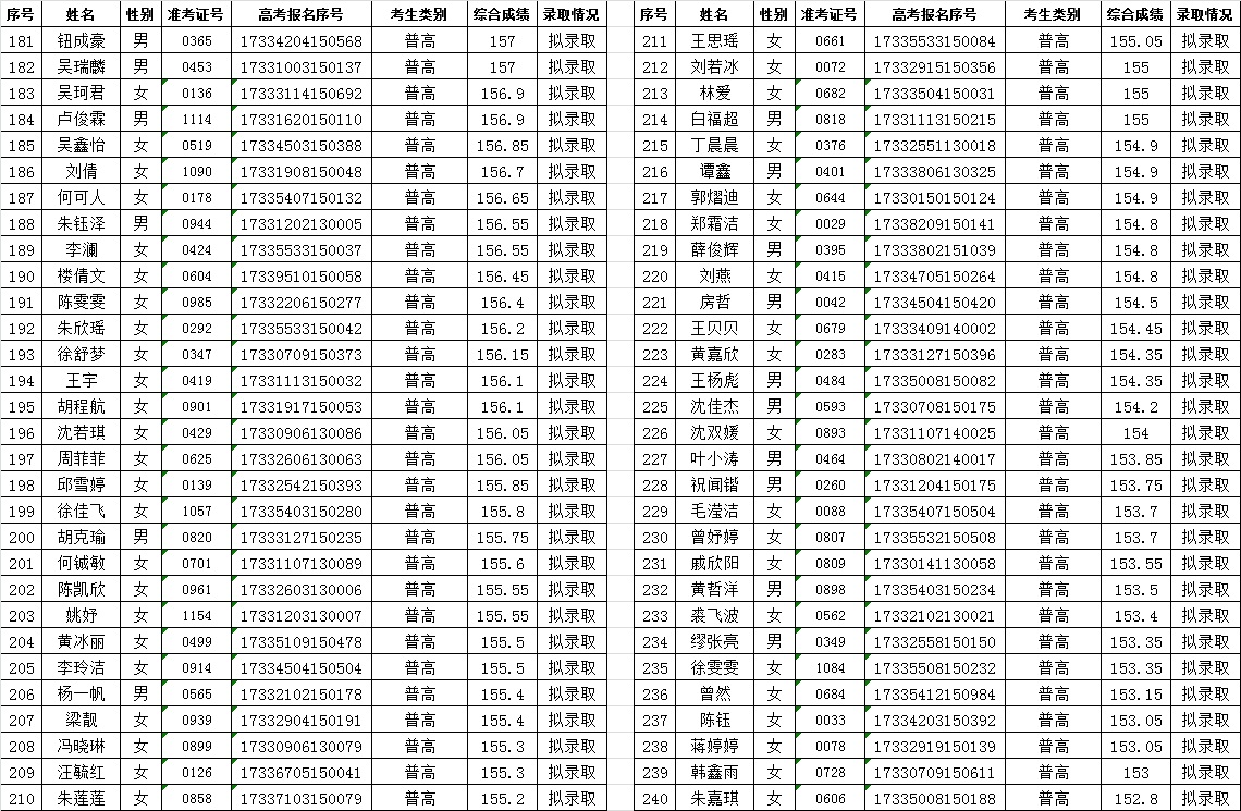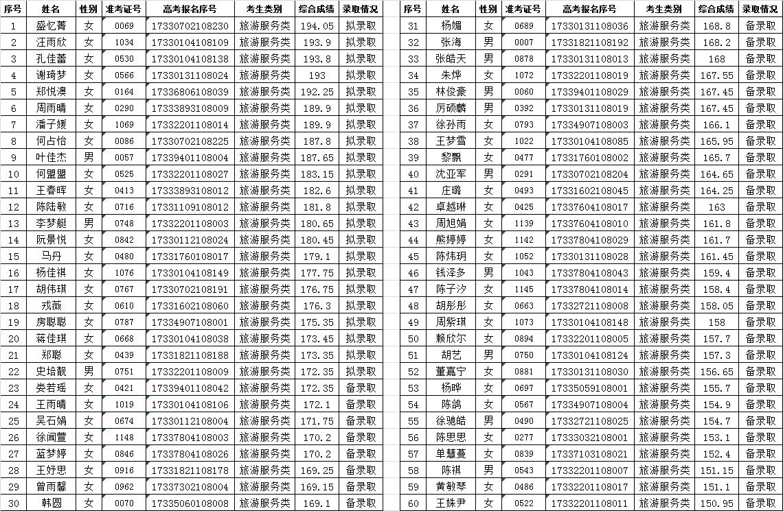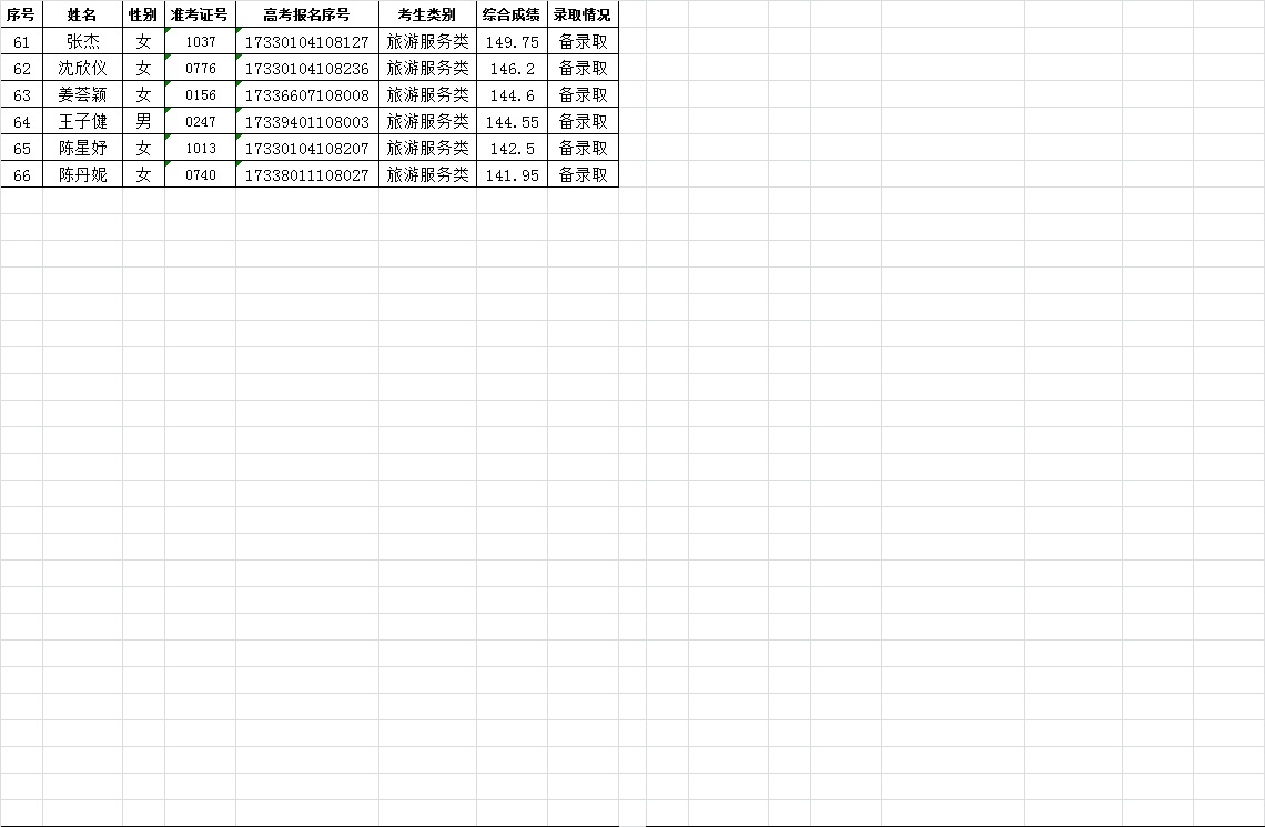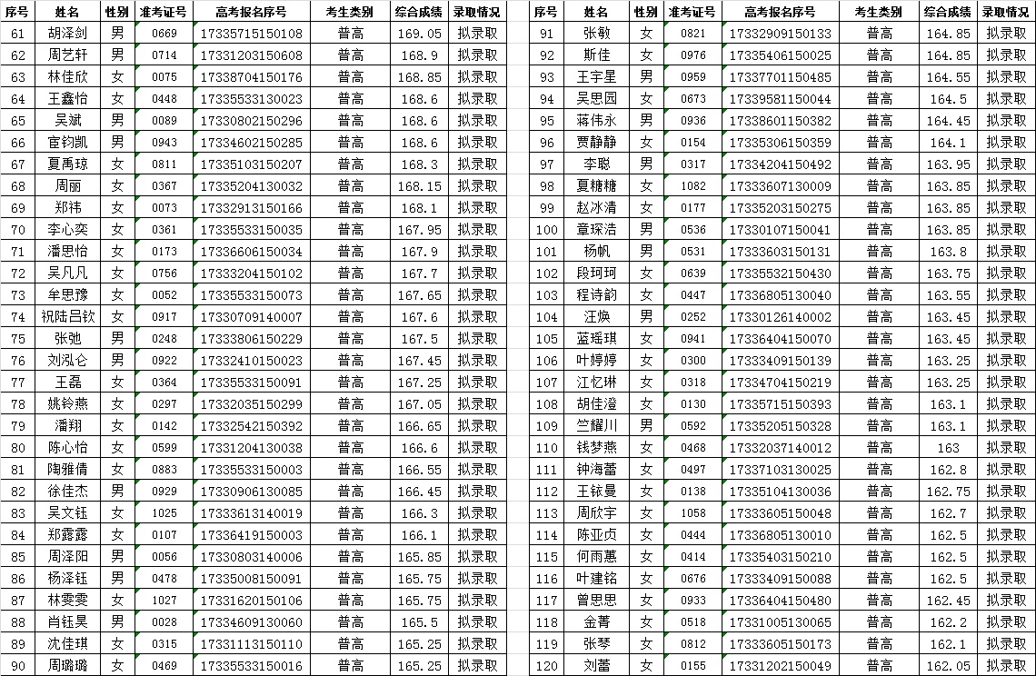 关于2017年空中乘务专业提前招生录取情况的公告
