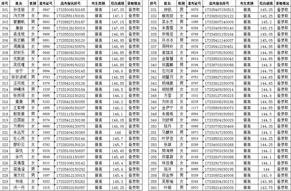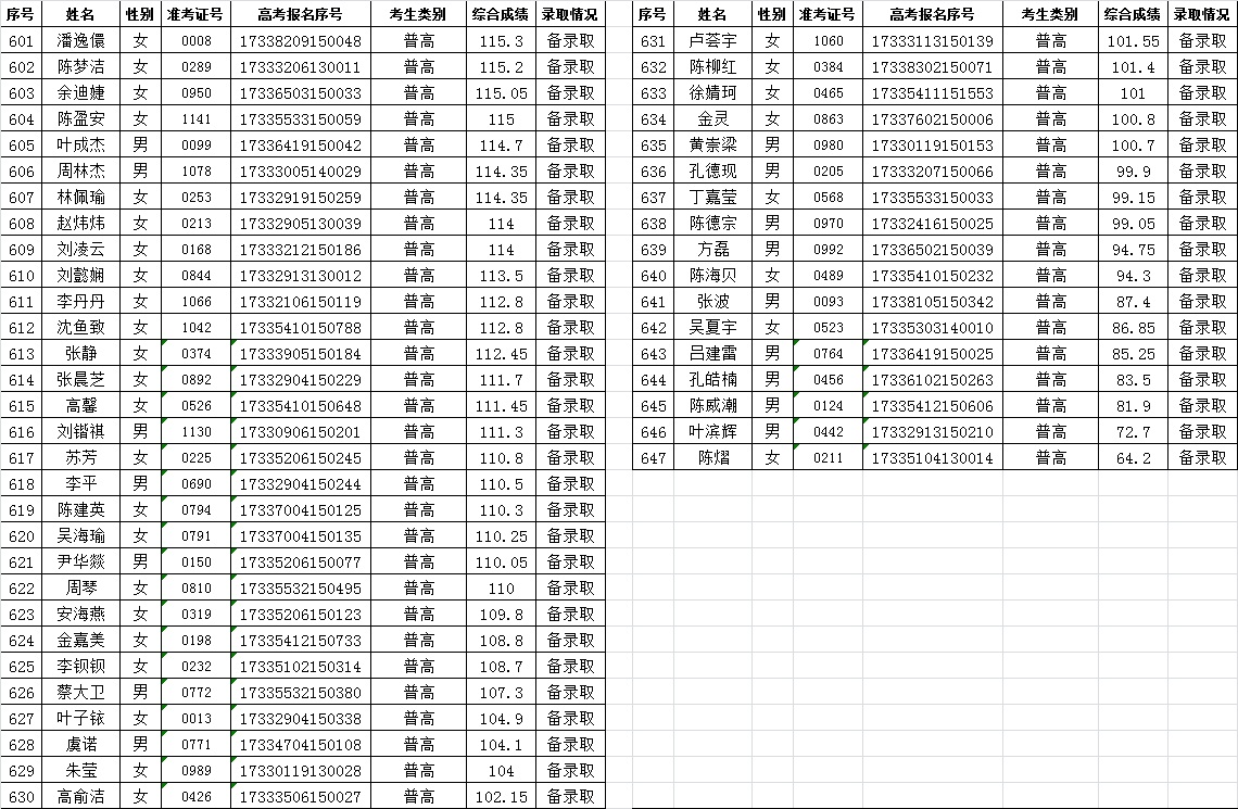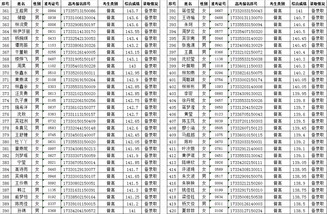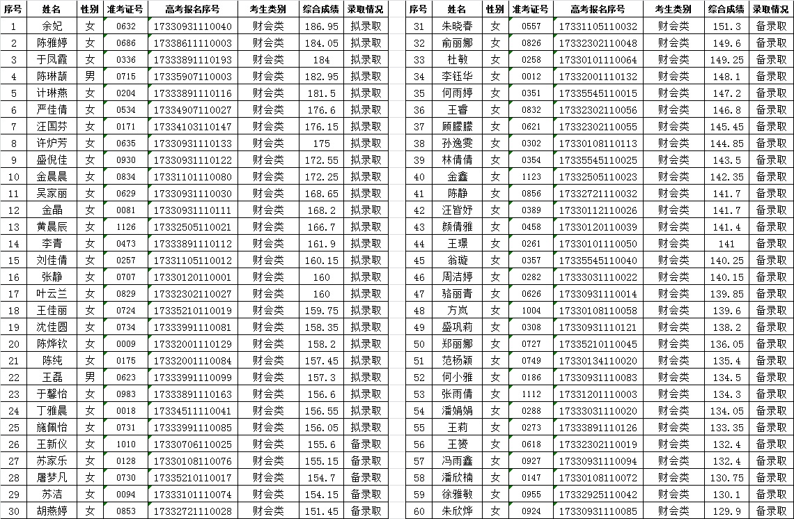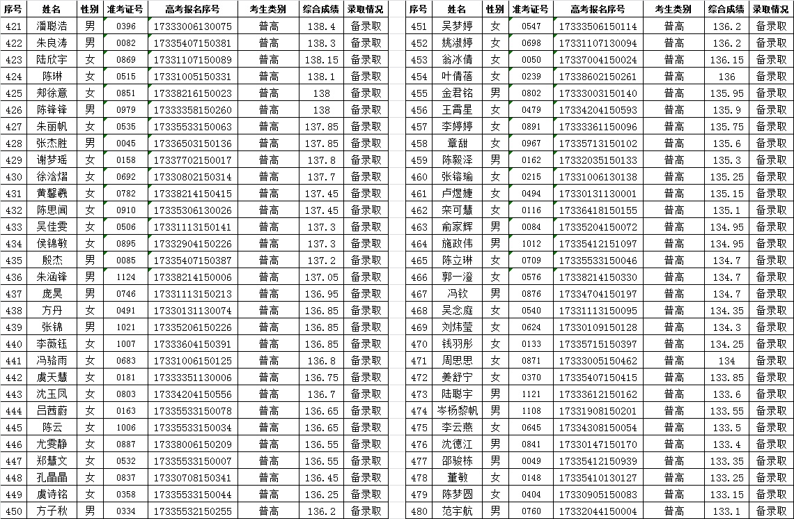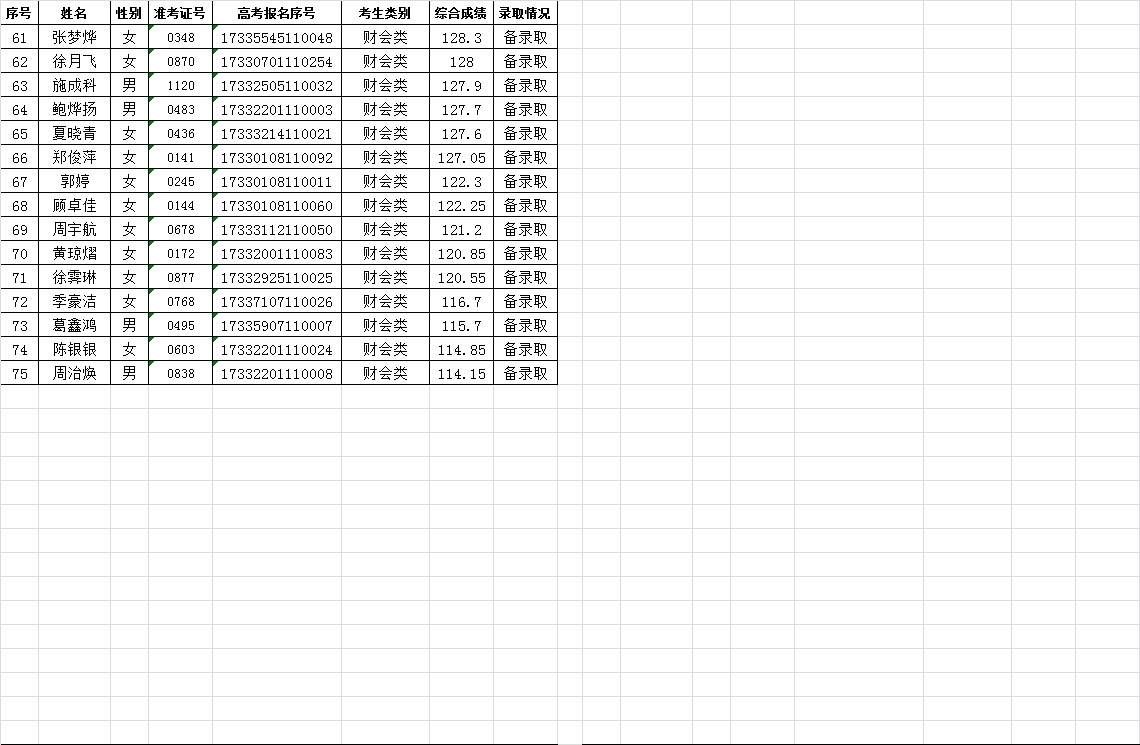 关于2017年空中乘务专业提前招生录取情况的公告