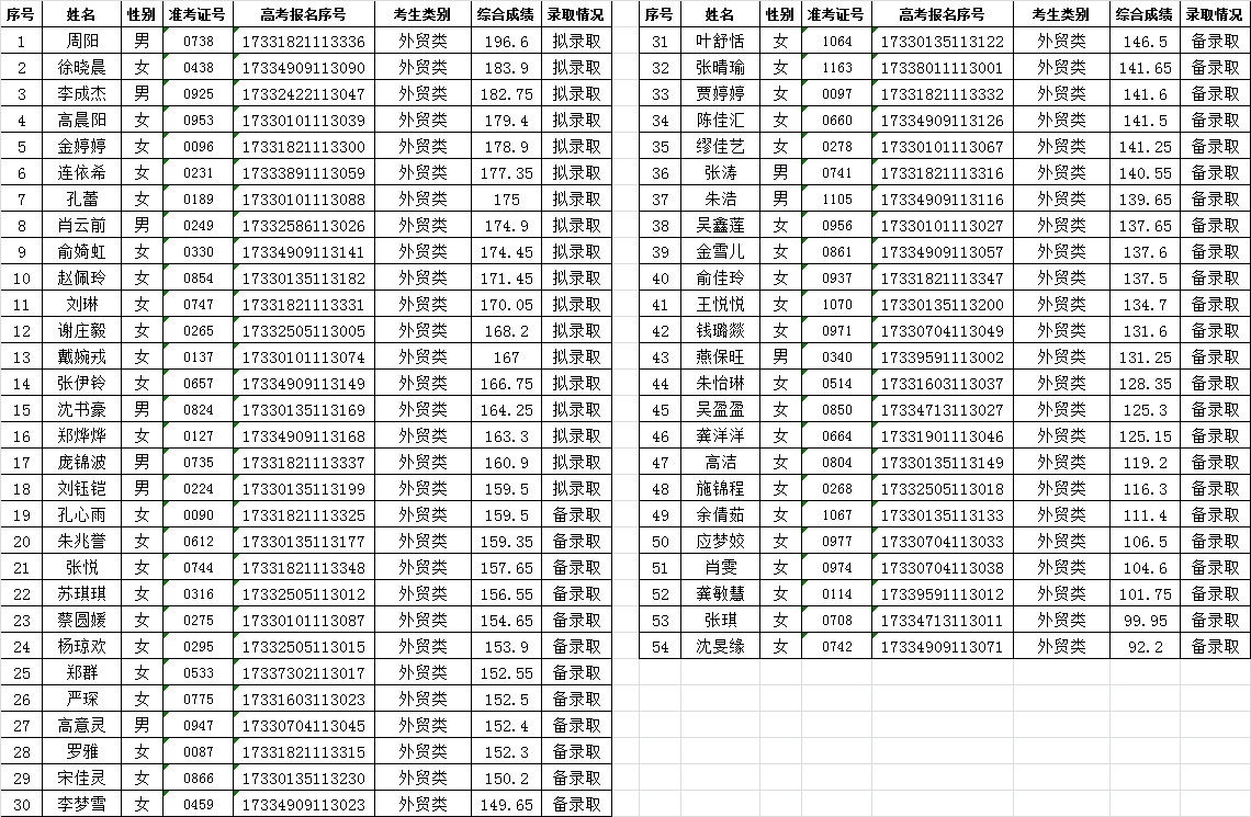 浙江省招生代码:0054