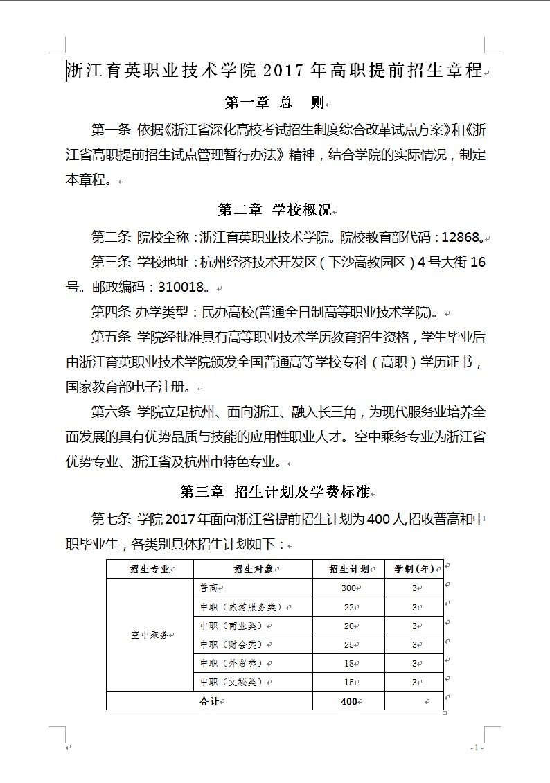 招生咨询 招生公告 报考指南 提前招生 历年分数 2025年招生专栏 录取查询 在线咨询 联系我们 地址:杭州市钱塘区4号大街16号 邮编:310018 电话:0571-86911032、86877189 招生公告 当前位置:首页 >> 招生咨询 >> 招生公告 浙江育英职业技术学院2017年空乘招生章程 时间:2017-01-24