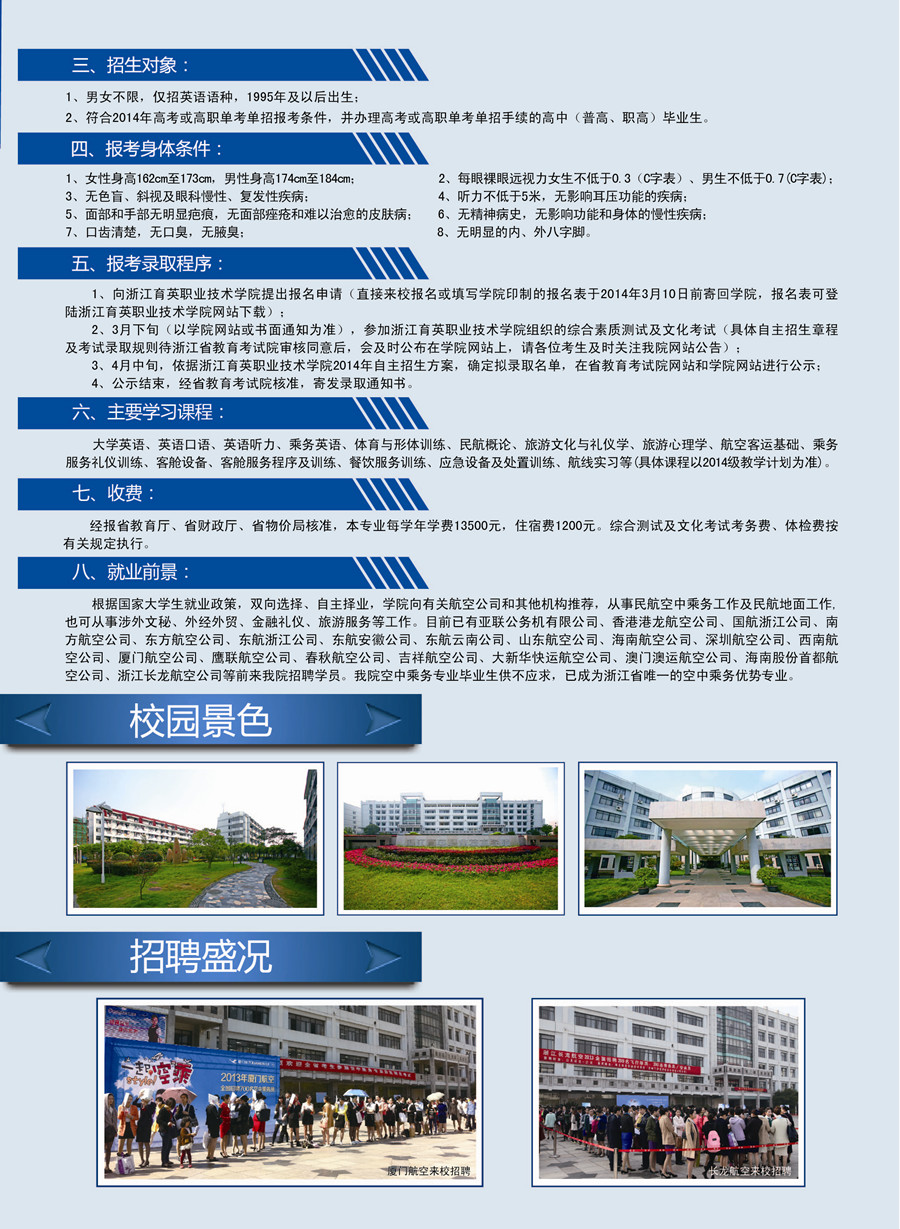 2014年空中乘务专业自主招生简章