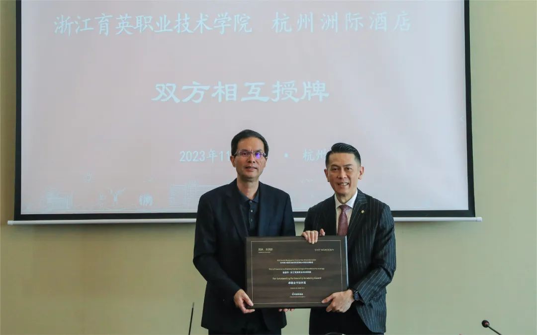 李国雄表示,育英学院是洲际酒店集团的重要合作伙伴;感谢育英学院在杭州亚运会期间给予洲际酒店集团的大力支持,期待校企双方合作成立“育英•洲际英才培养研习中心”,优化合作模式,形成友好互利的长效机制。