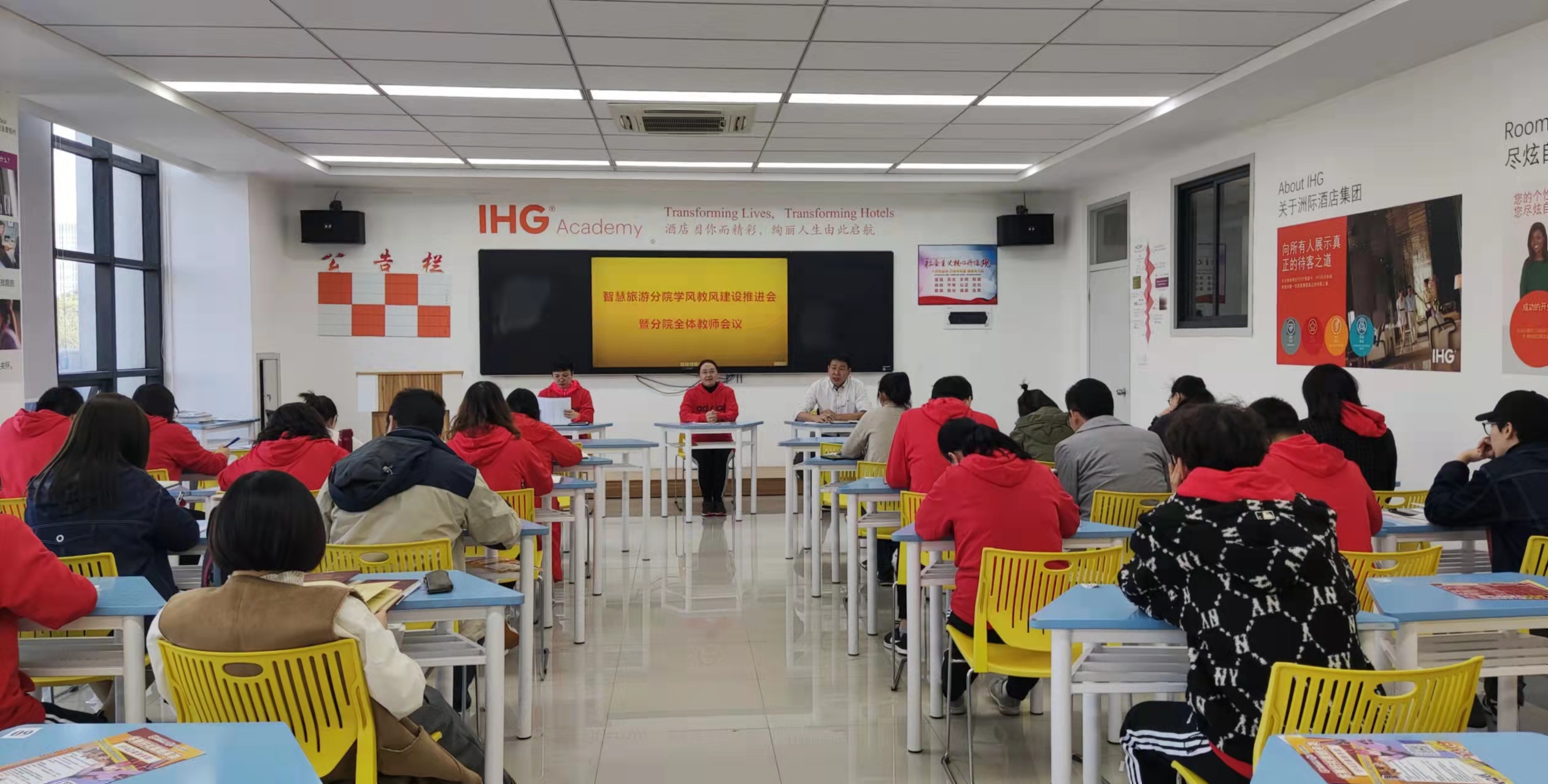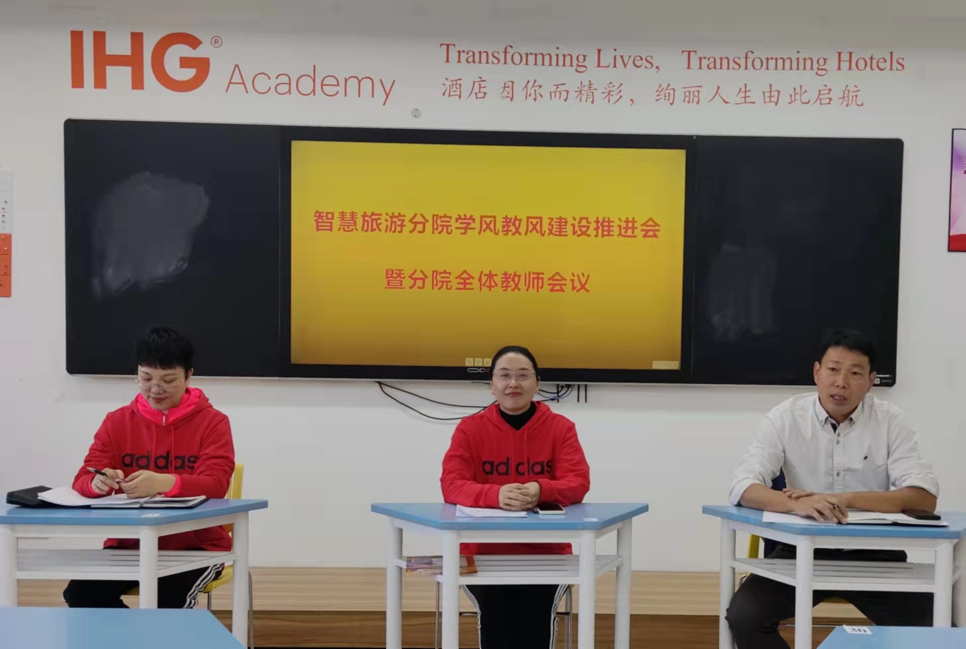 2021年11月11日12:30分,智慧旅游分院于1303A教室召开分院全体教师会议暨教风学风建设推进会。会议由分院谢剑峰书记主持,全体教师参加。