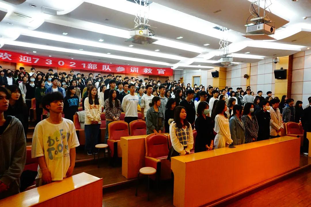 2021年10月27日晚18:30,智慧旅游分院在3号报告厅开展了军训表彰暨学风建设动员大会,参与大会的有分院院长黄华老师、党总支书记、副院长谢剑峰老师,副院长周岚老师、新生辅导员翁蕾老师、陈栋老师,21级新生班助以及大一学生。此次大会由团总支书记庞璁老师主持。
