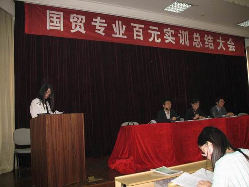 2008418上午8时,06国贸专业百元实训总结交流大会在一楼报告厅隆重举行,会议由实践教学秘书林昌平老师主持,教务处王彤处长,系贺存乡主任,国贸教研室指导教师及相关班主任参加了此次会议。