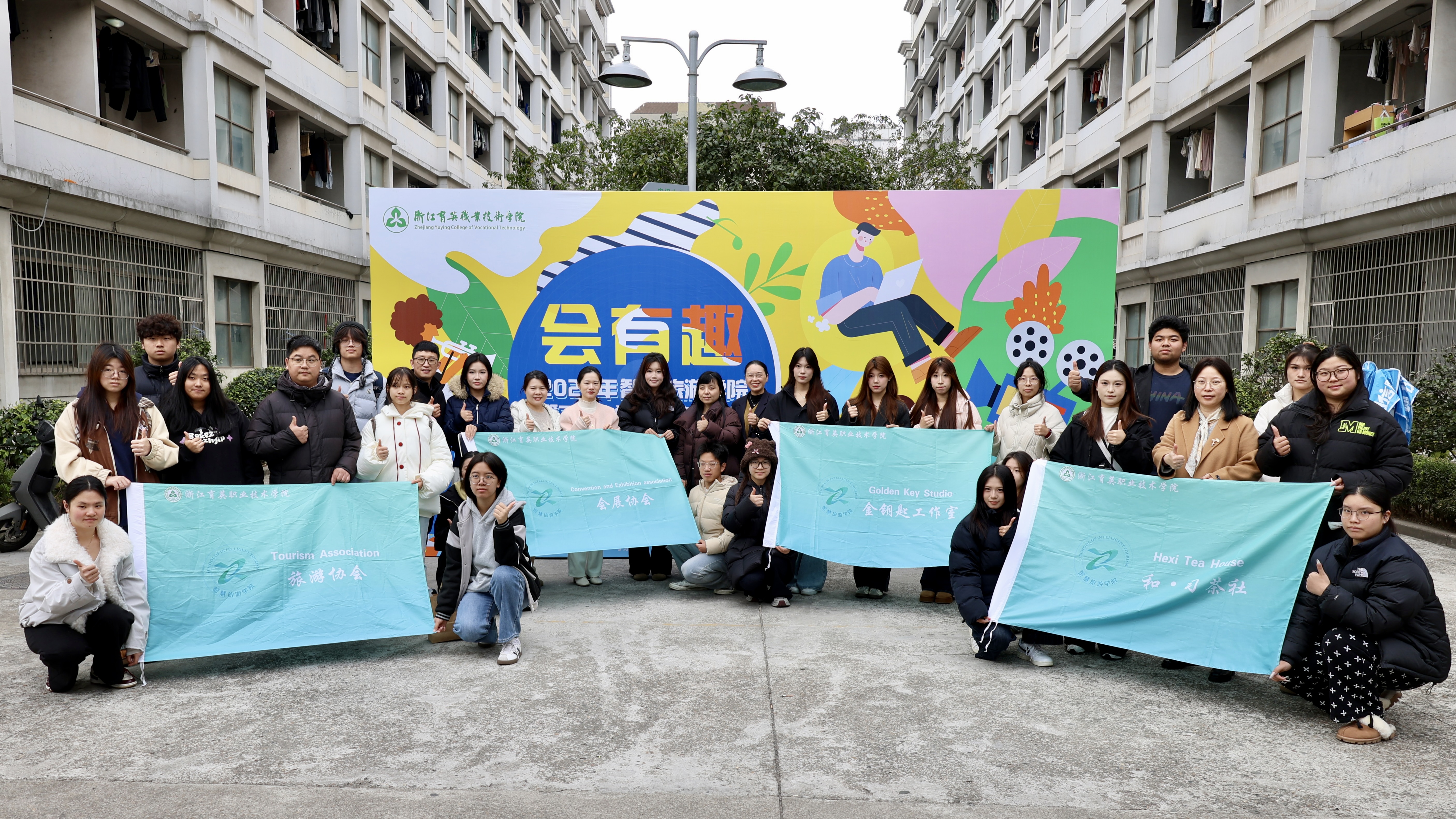 2025年12月23日下午,星空彩票体育app平台会展协会联合旅游协会、和·习茶社、金钥匙协会共同举办的“会有趣”第二届大学生趣味生活节在生活区热烈开展。本次活动从下午13点持续至16点,不仅吸引了同学们的热情参与,学院领导和老师们也来到现场为同学们点赞,活动现场氛围活跃,互动频繁,成为冬日校园中一道洋溢青春活力的风景线。