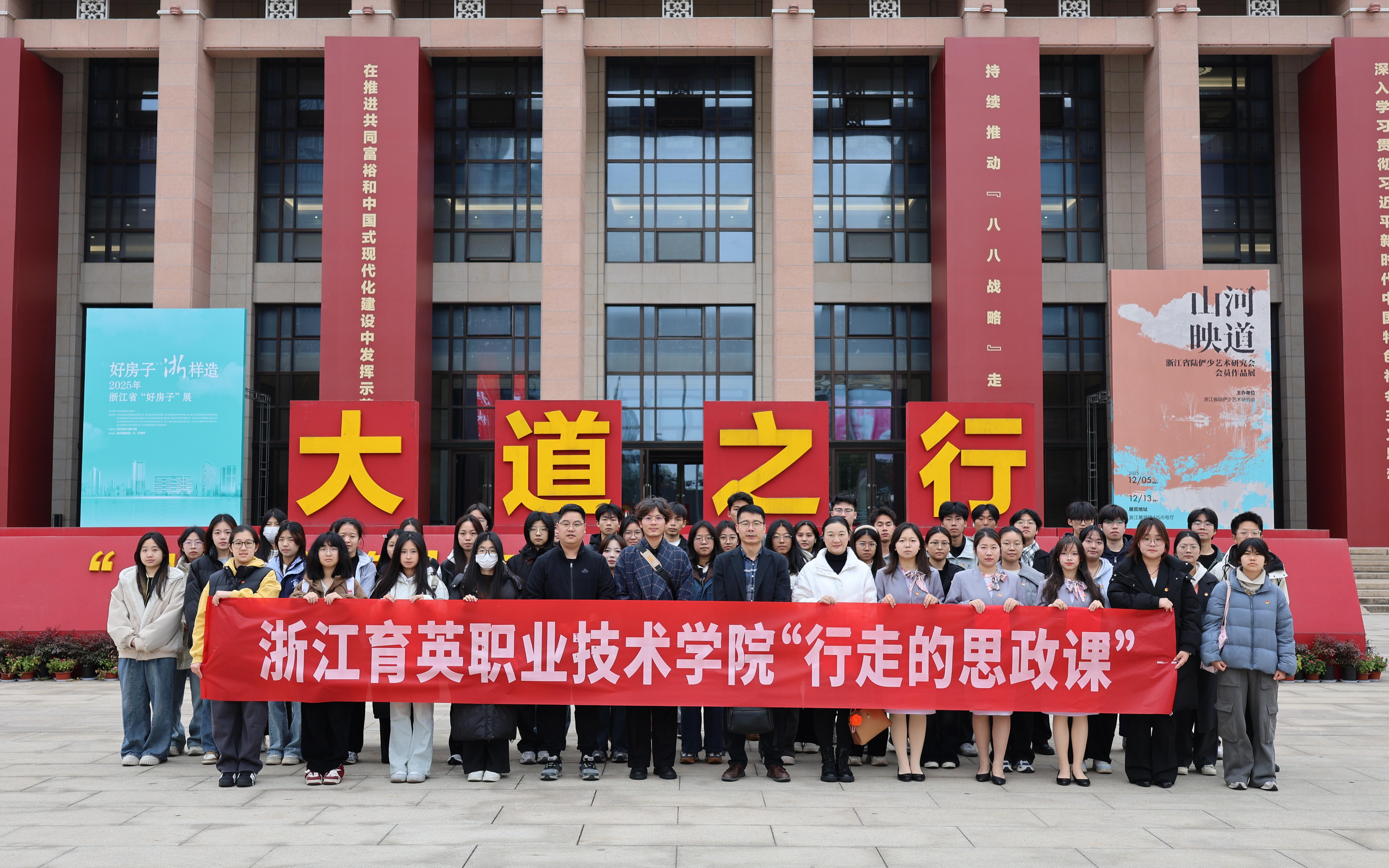 为深入学习贯彻习近平新时代中国特色社会主义思想,推动思政小课堂与社会大课堂深度融合,引导青年在行走中学思践悟、在实践中坚定信仰。2025年12月12日,星空彩票体育app平台“行走的思政课”走进浙江展览馆,师生们共同参观了大道之行——“八八战略实”施20周年大型主题展览。活动由学校党委委员、党群部部长王贤军带队,旅游学院党总支委员、组织员胡晶晶,辅导员陈栋、陈骏荣、秦云等老师共同组织,学院第53期党校学员一同参与。