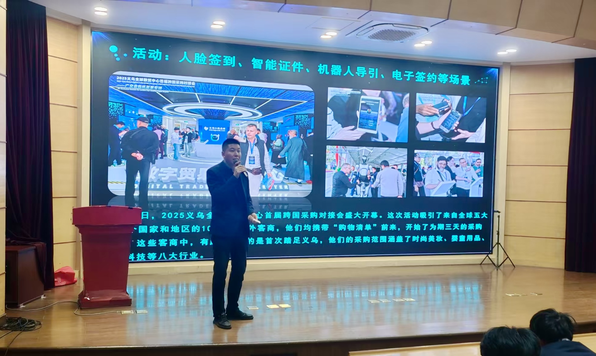 在“技术实践”环节,陈洋总经理结合“准到数智会展平台”的多个真实案例,生动展示了数字化系统如何提升会展活动的运营效率。他以2025世界大学校长论坛为例,详解了嘉宾接待系统的全流程服务;通过首届国防科技工业文创博览会,阐释了官方小程序门户与票务预约系统的核心价值;并借助义乌全球数贸中心采购对接会,展示了人脸签到、智能证件等创新场景应用。